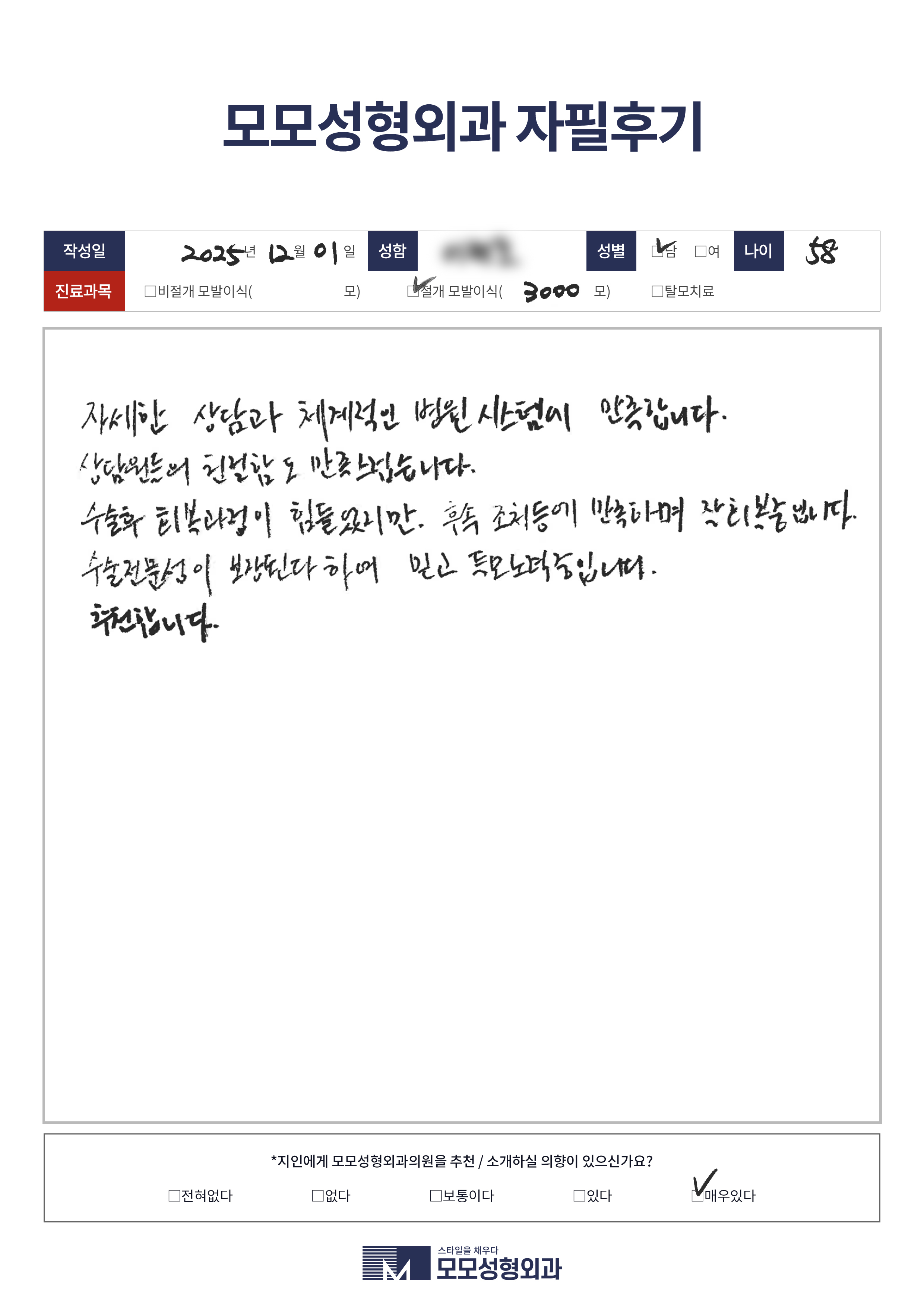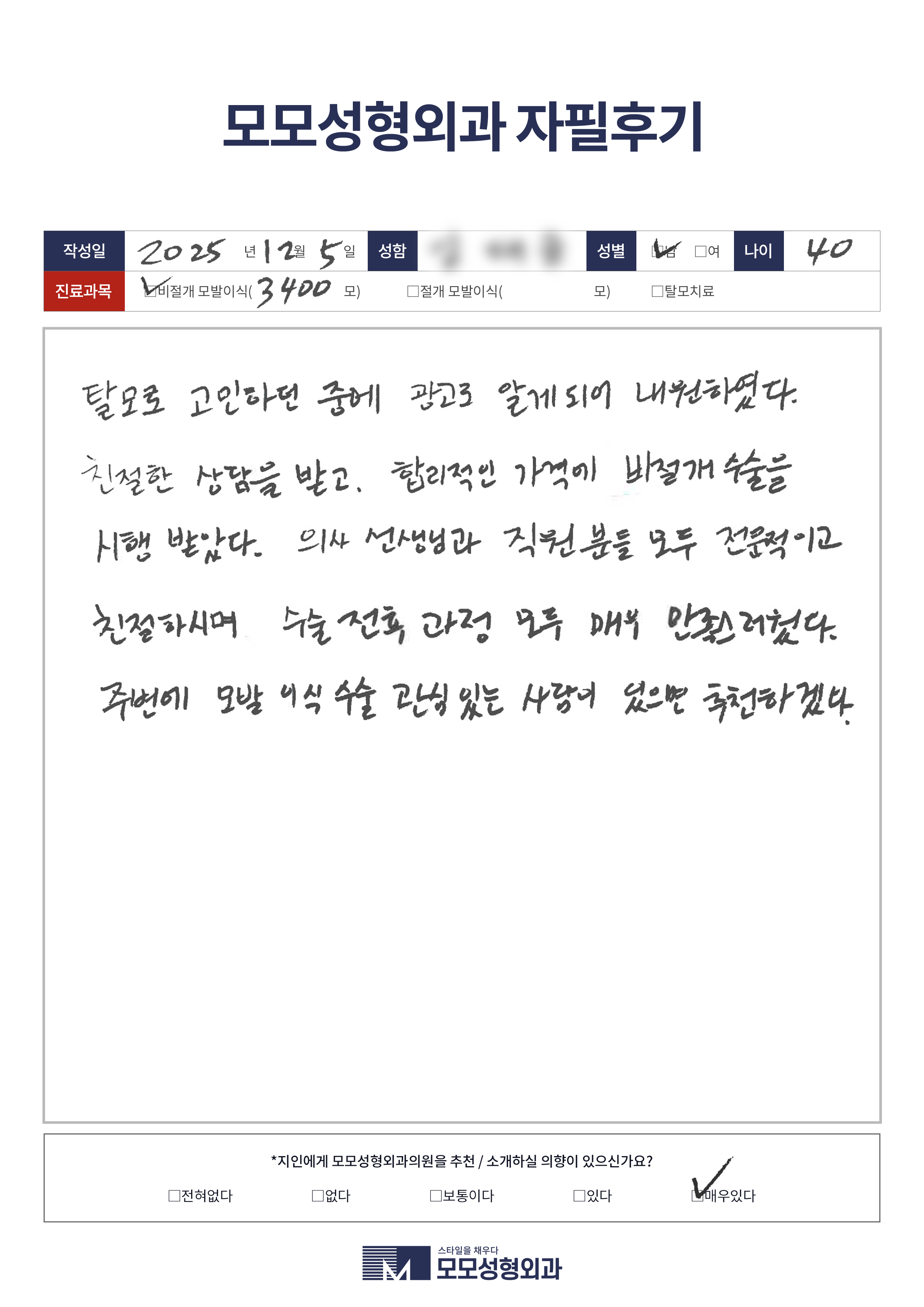 [40대]비절개모발이식3000모이상, M자이마