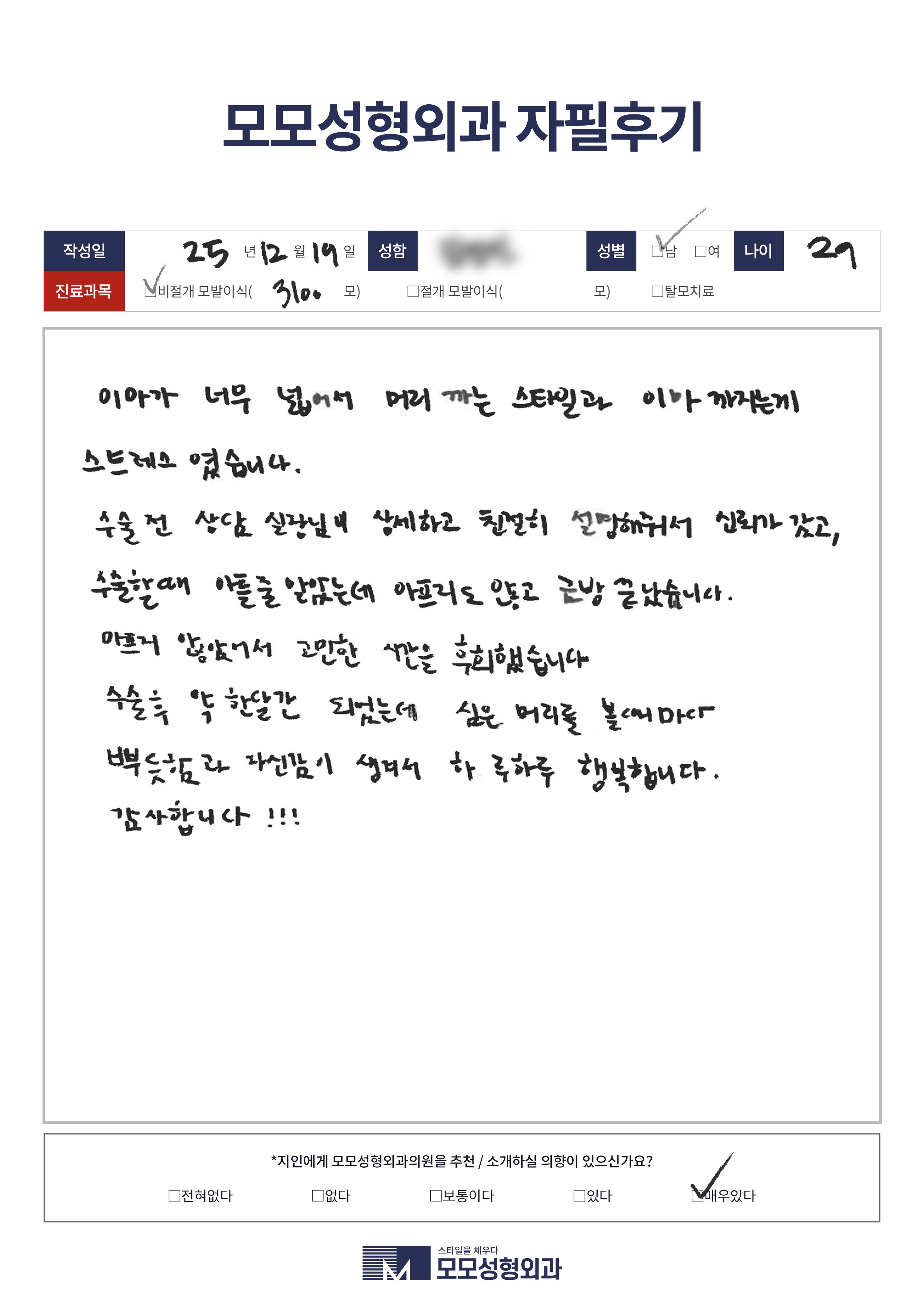 [20대]비절개모발이식3000모이상, M자이마