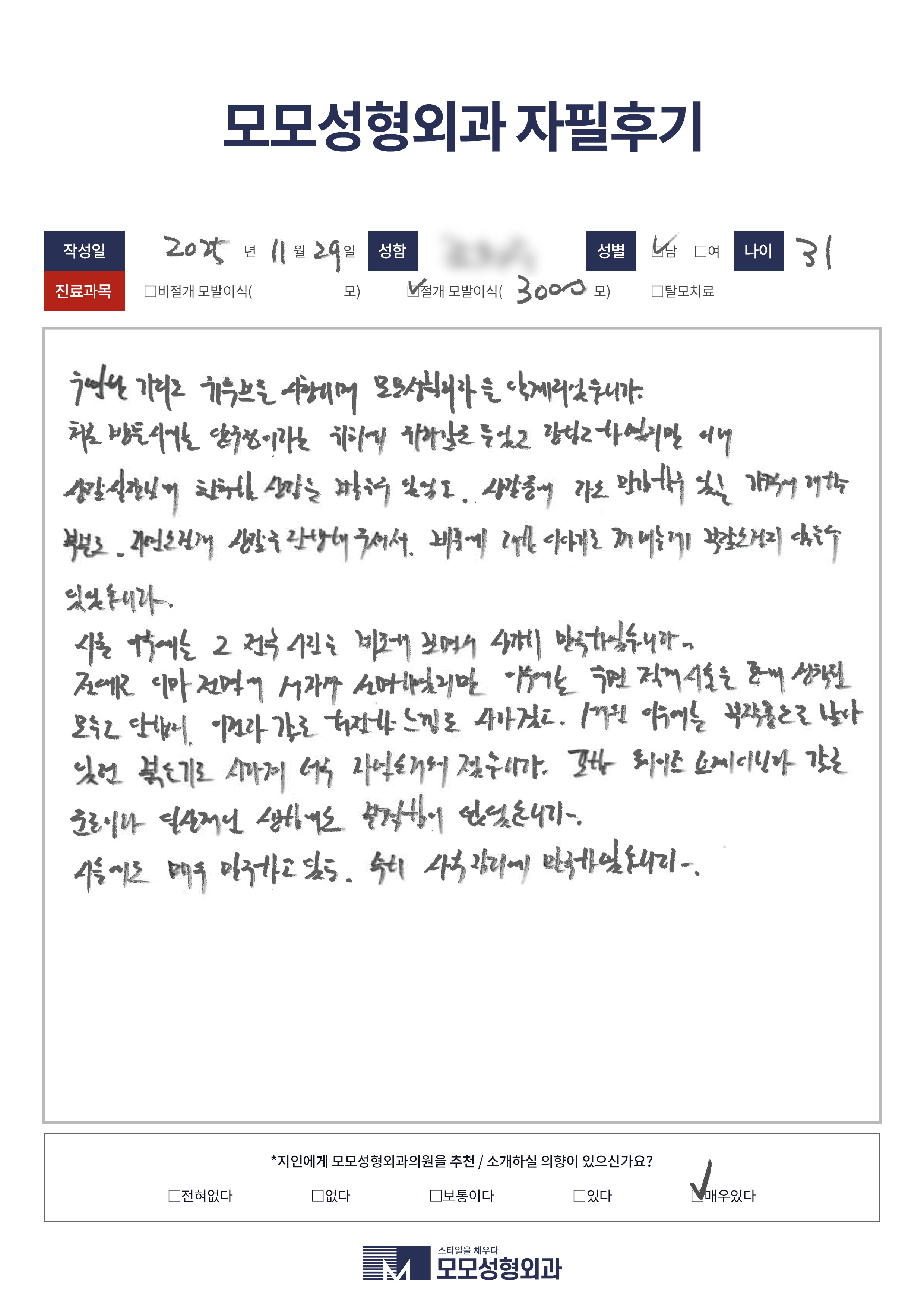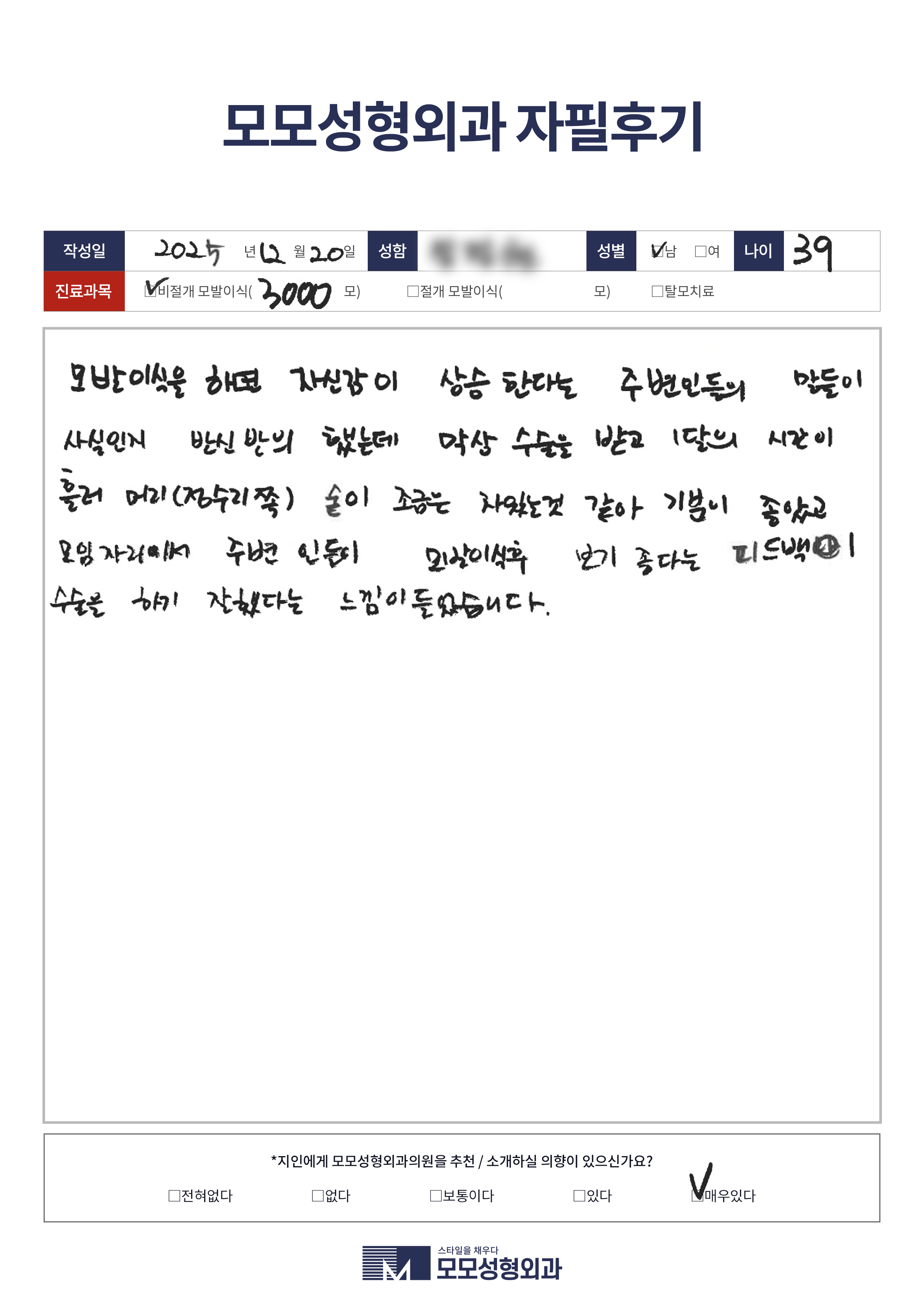 [20대]비절개모발이식3000모이상, M자이마