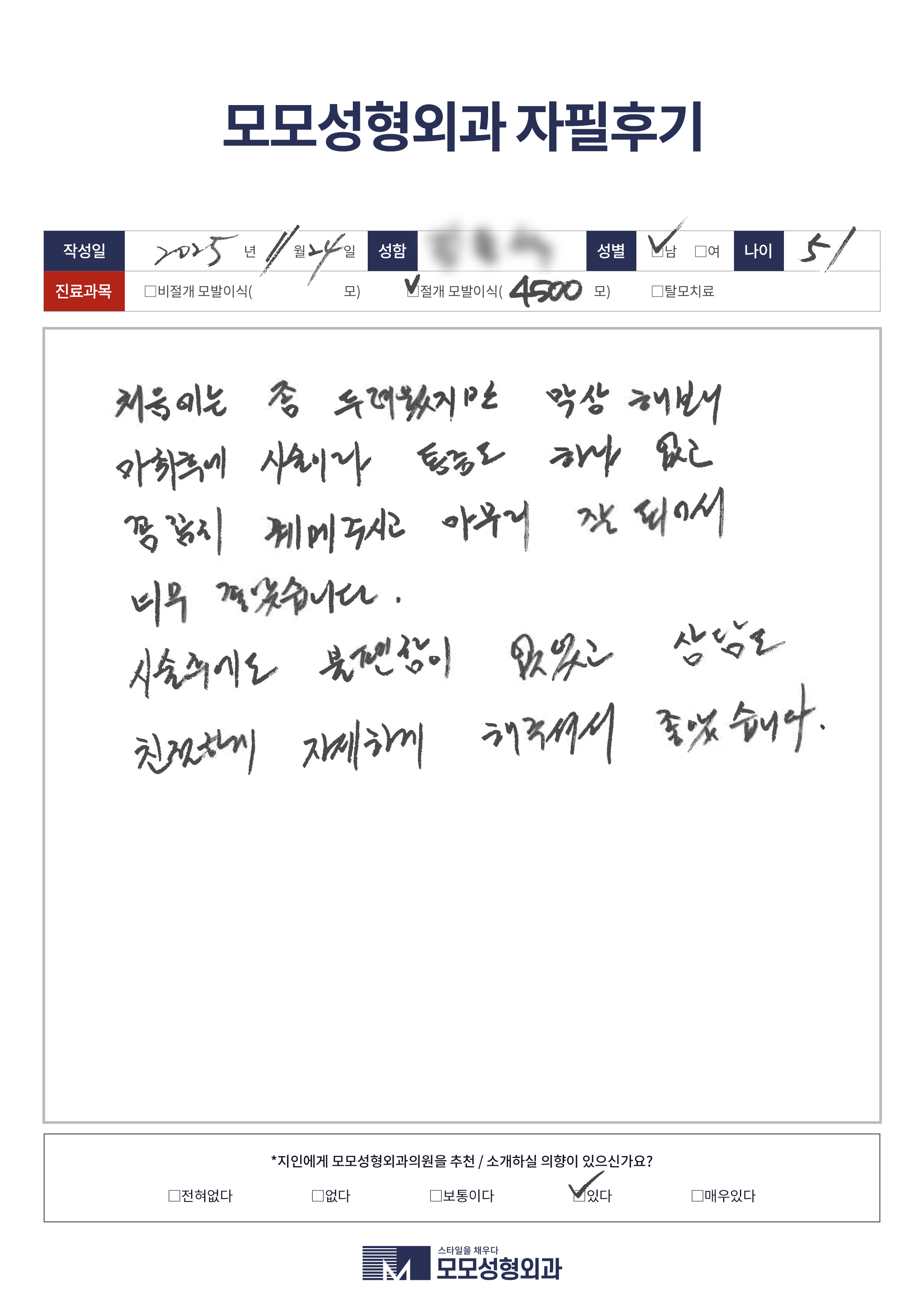 [50대]절개모발이식3000모, M자이마