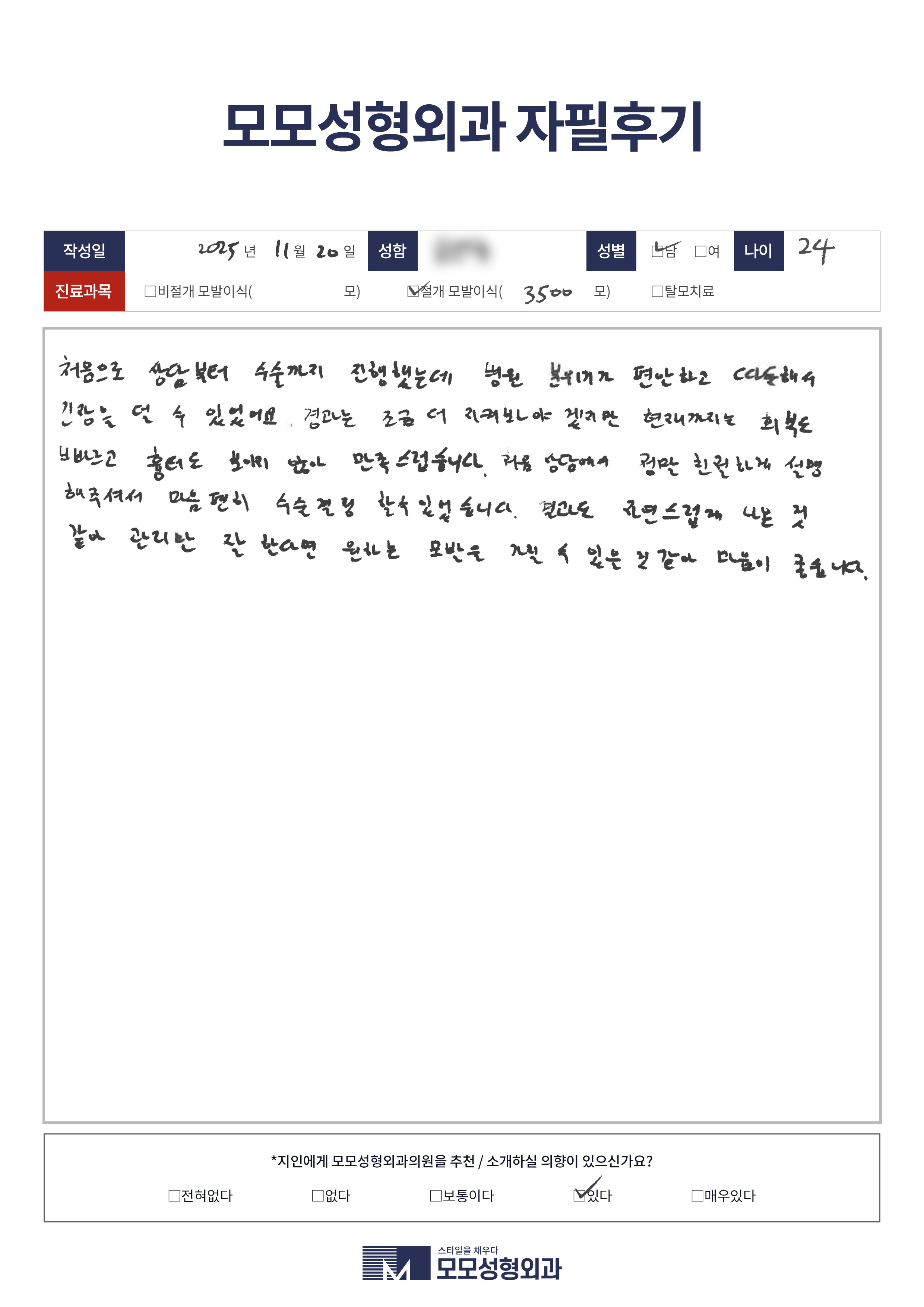 [20대]절개모발이식3500모, M자이마