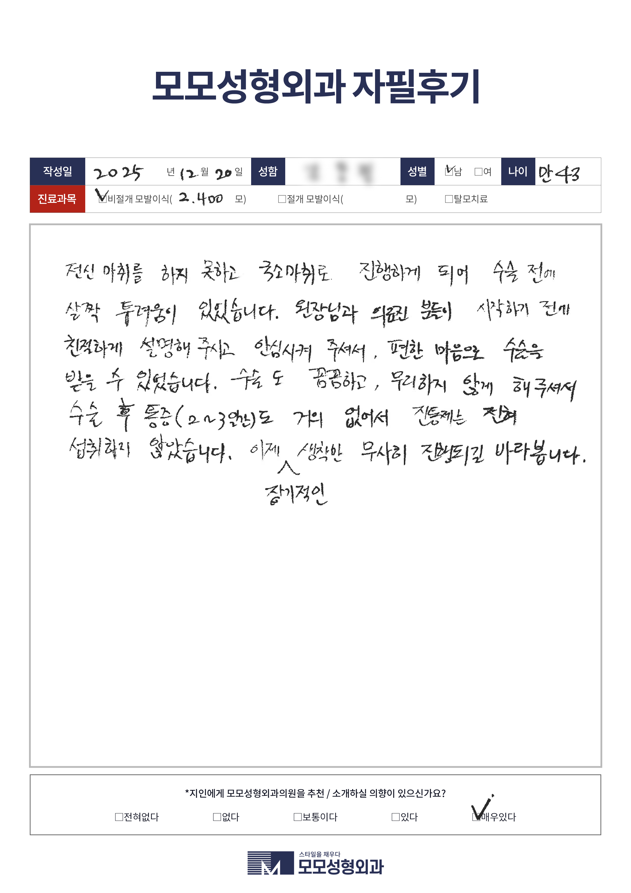 [40대]비절개모발이식2000모이상, M자이마