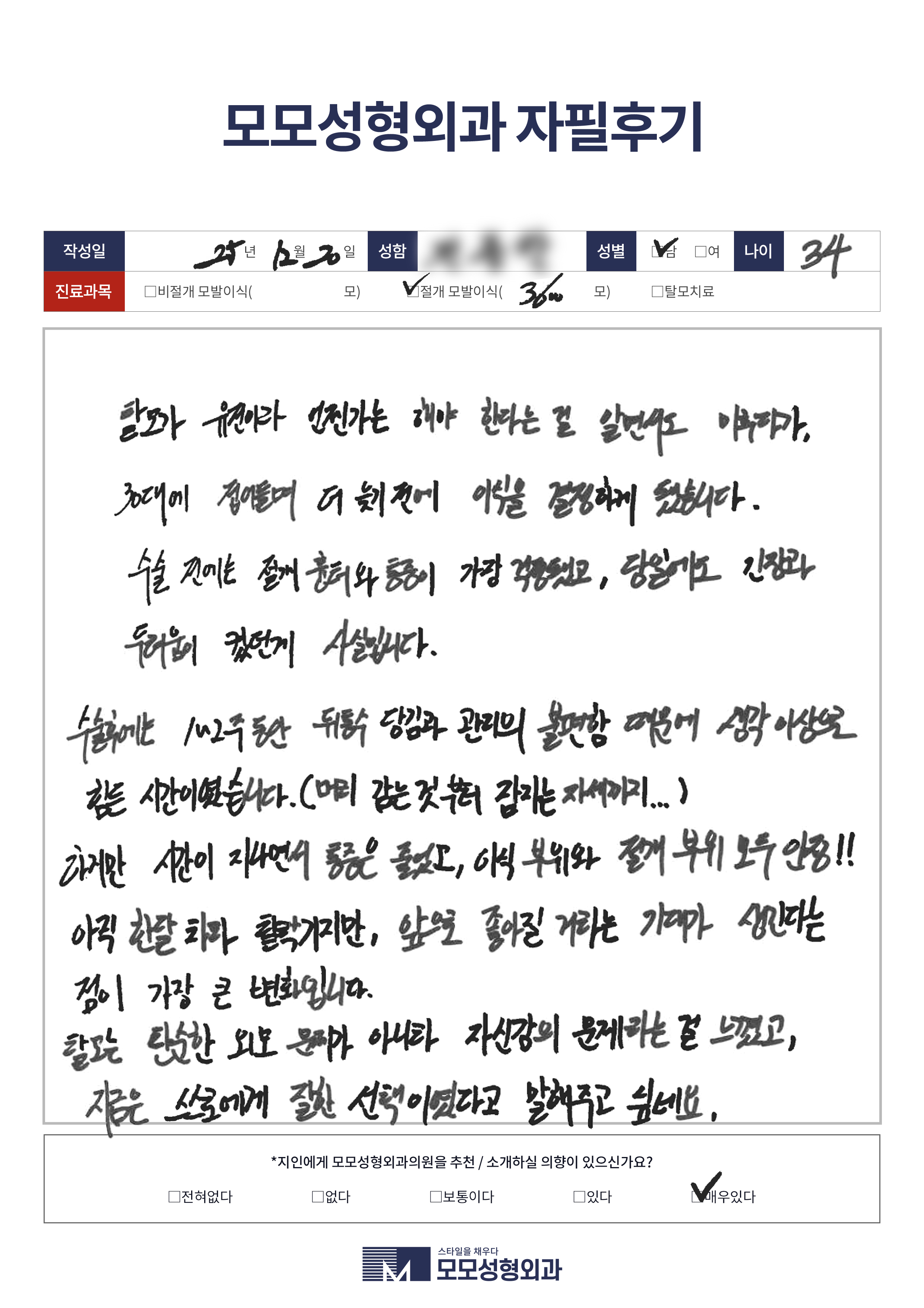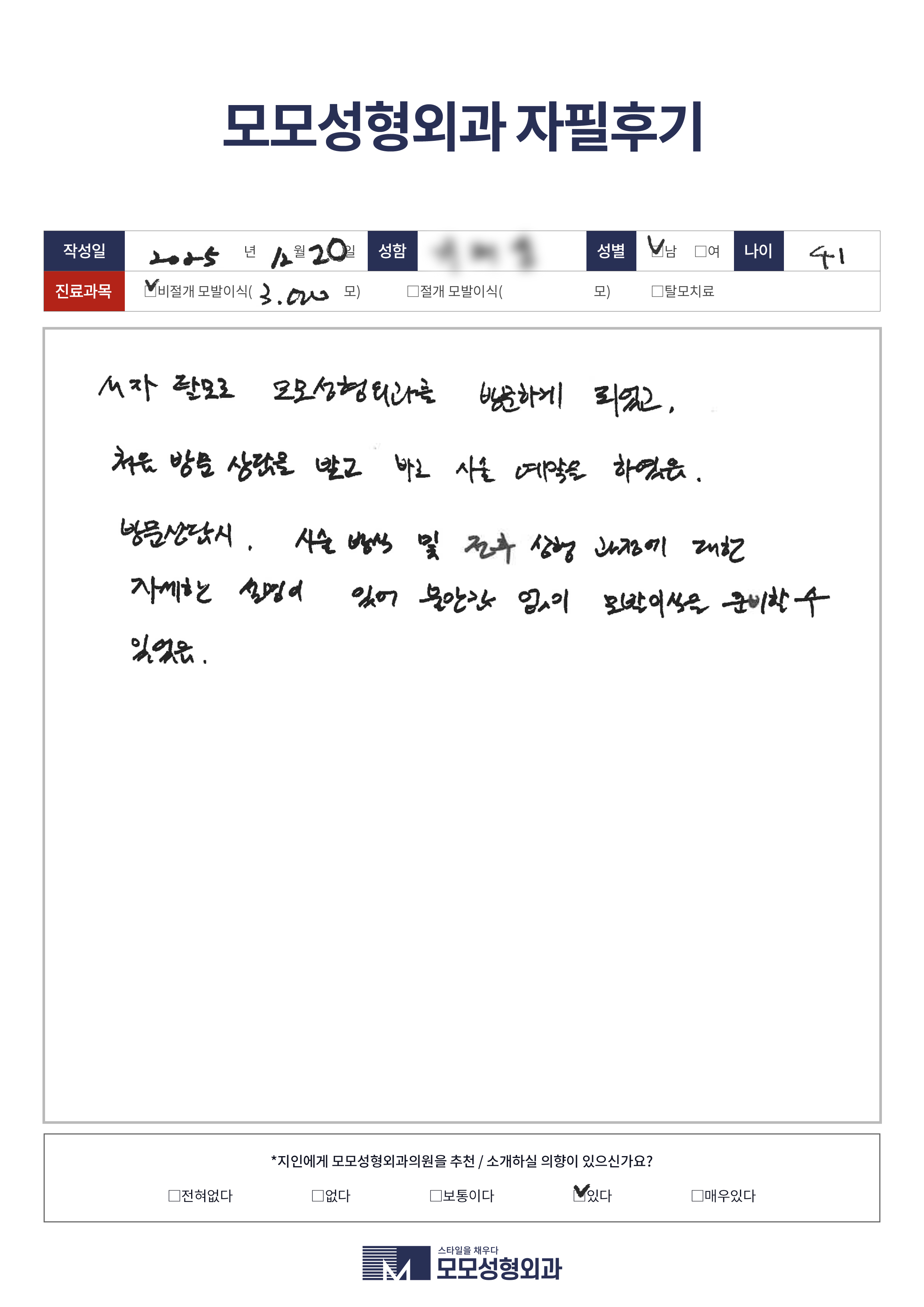 [40대]비절개모발이식3000모, M자이마