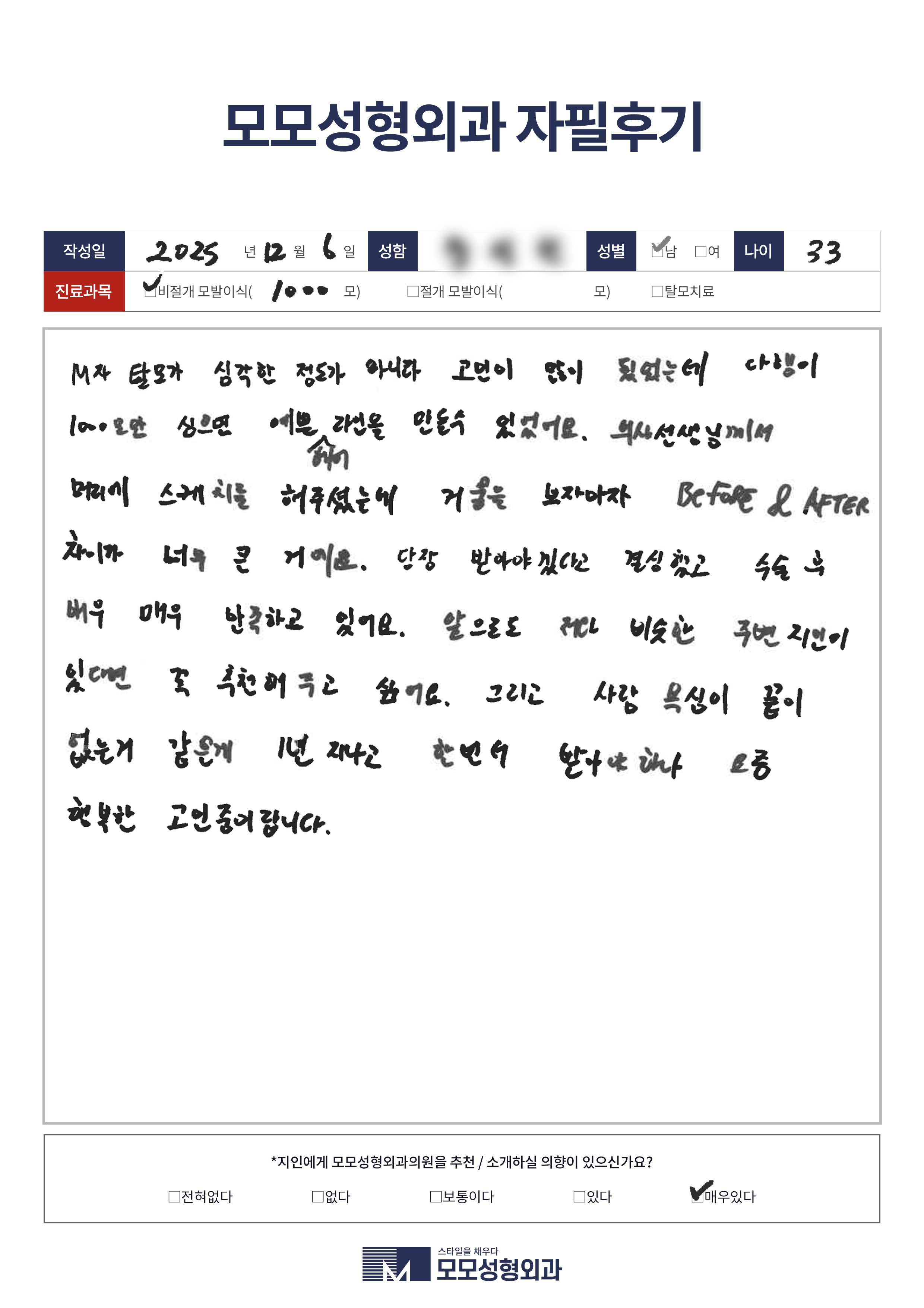 [30대]비절개모발이식1000모, M자이마