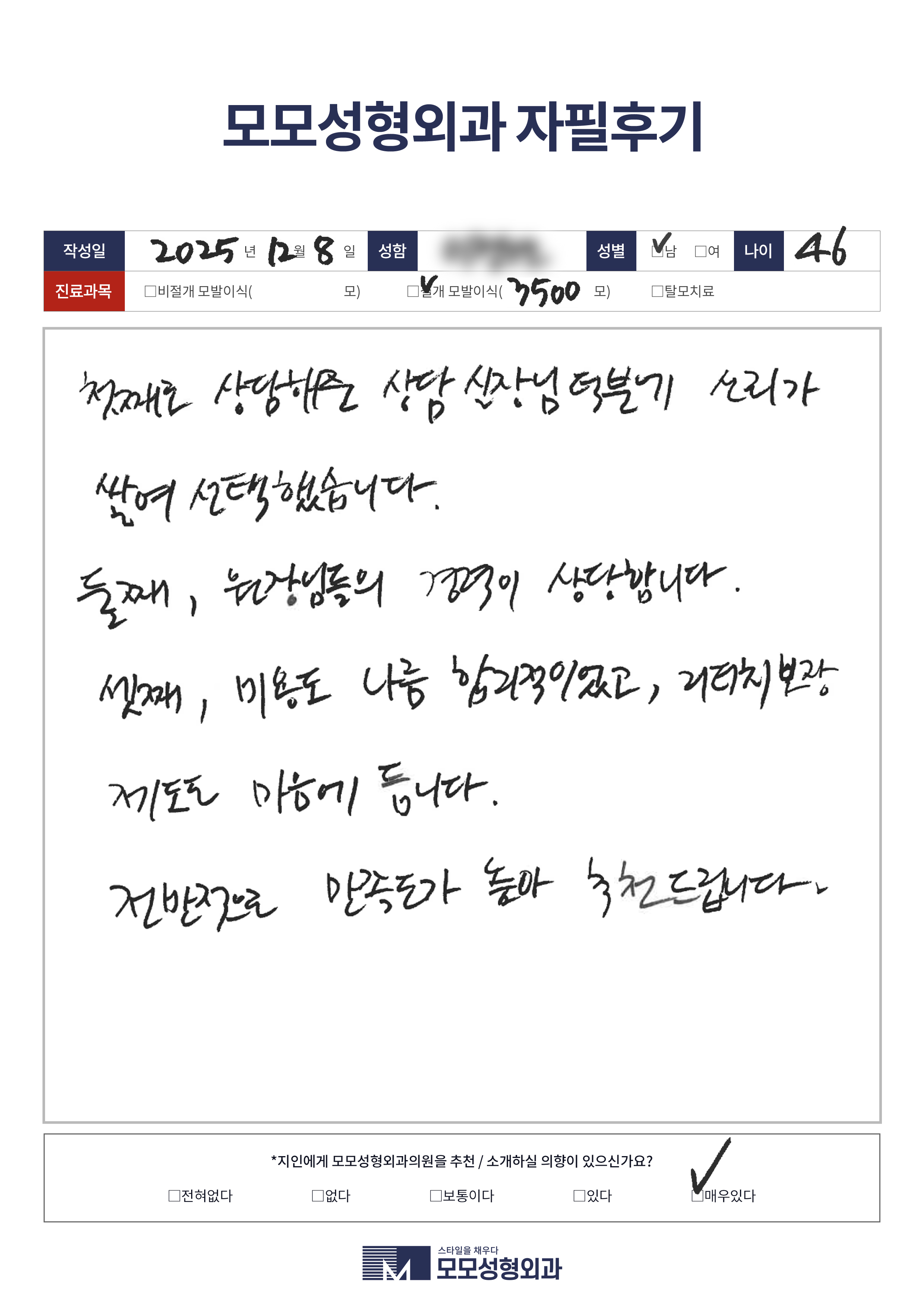 [40대]비절개모발이식3000모이상, M자이마