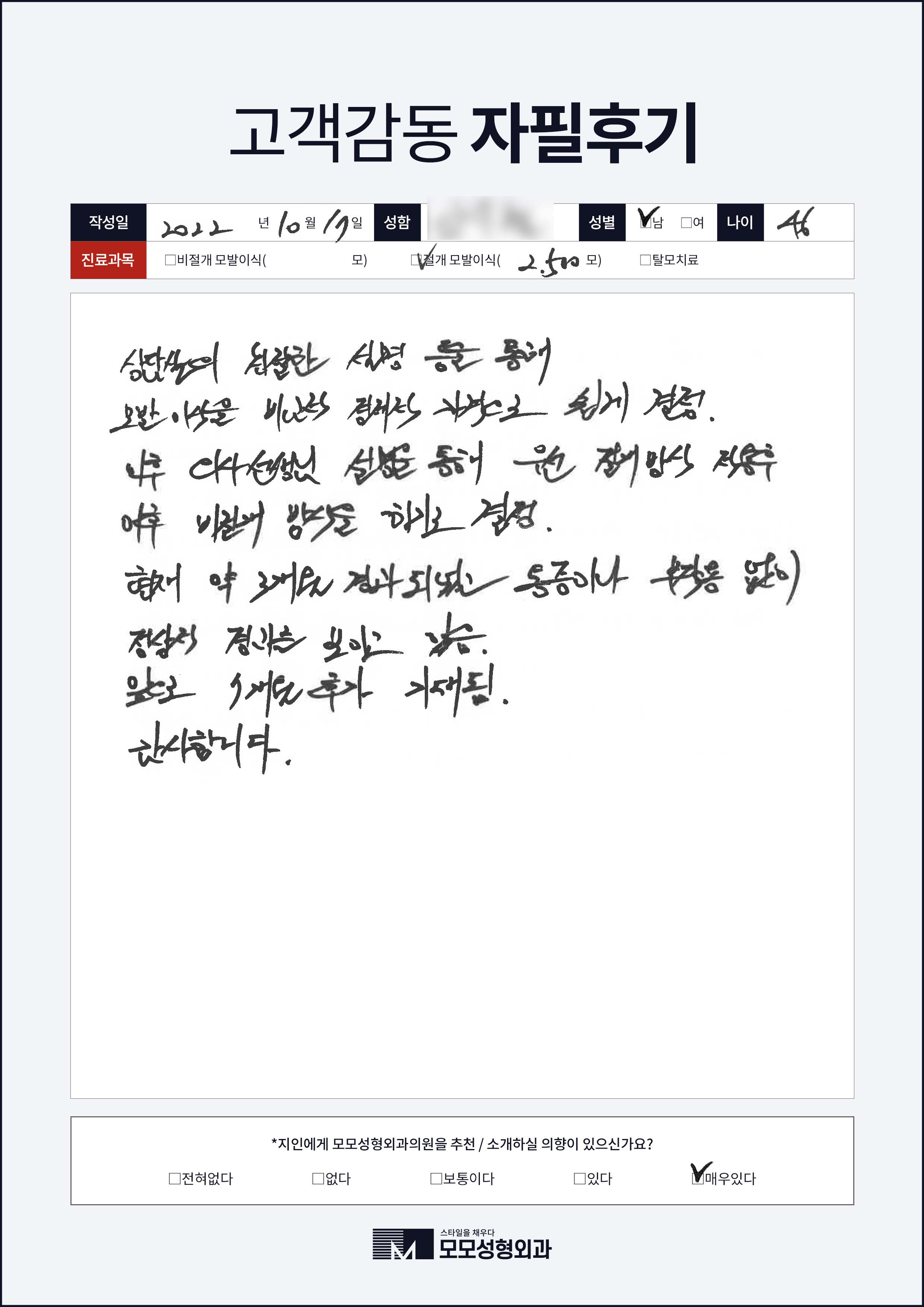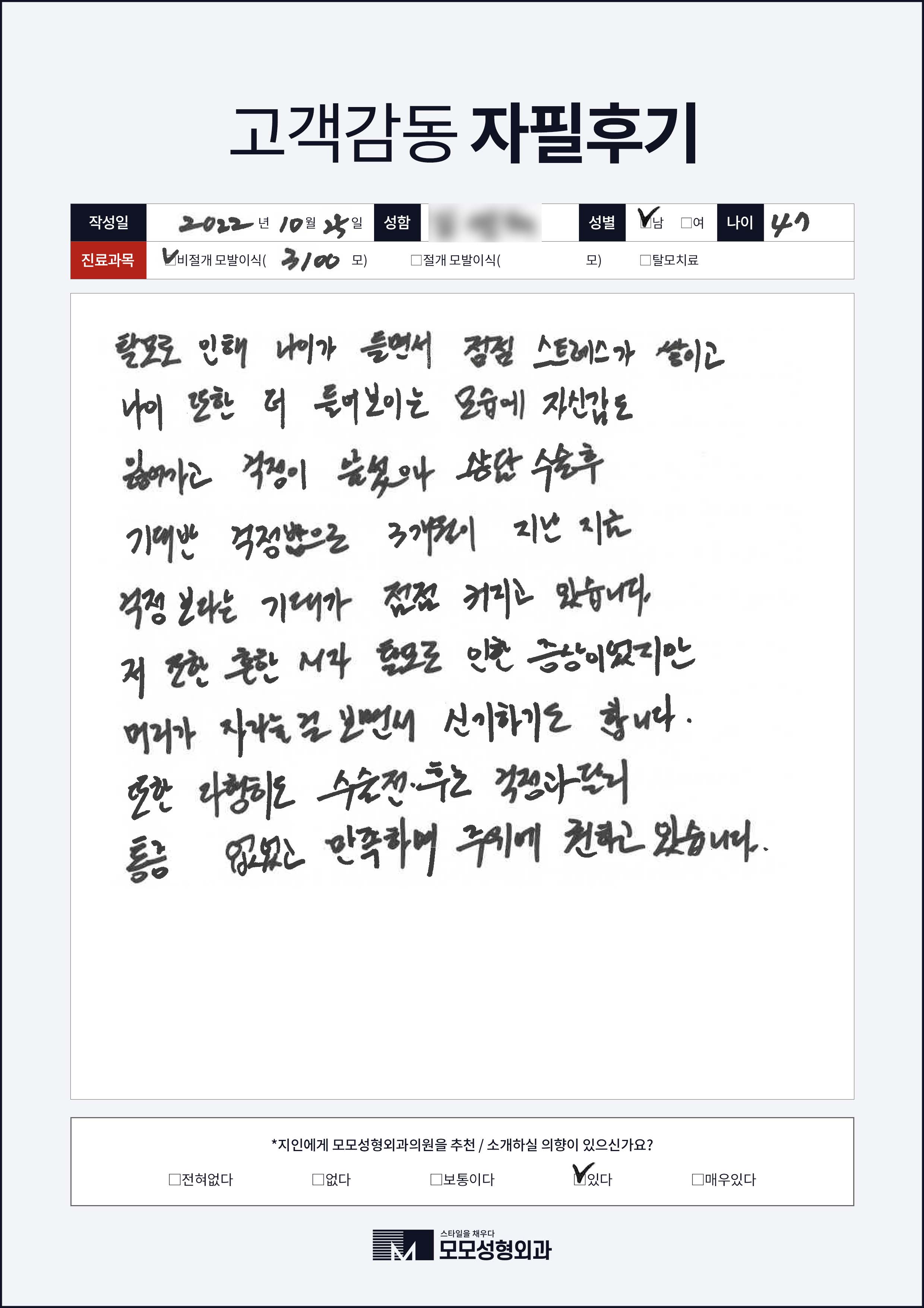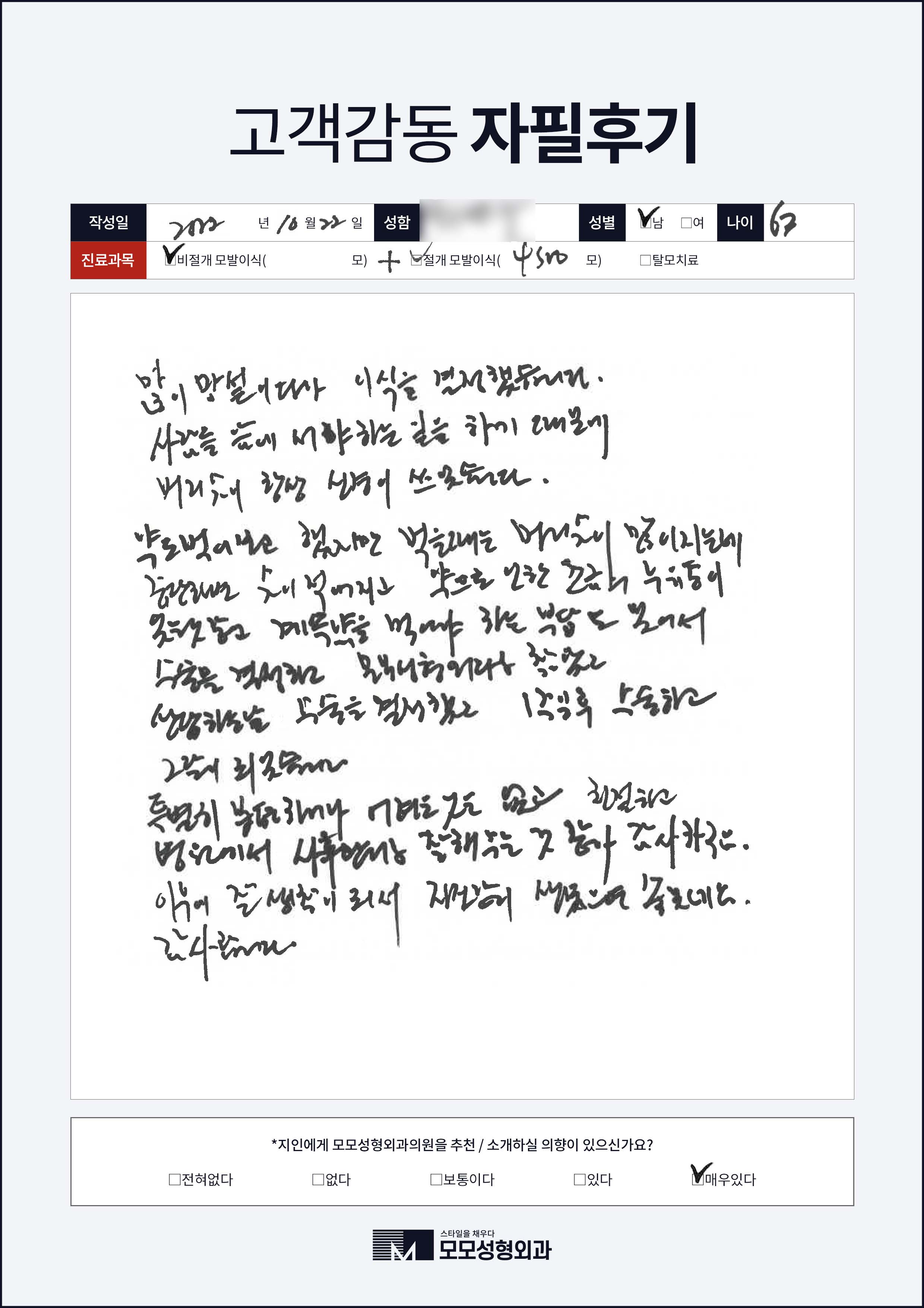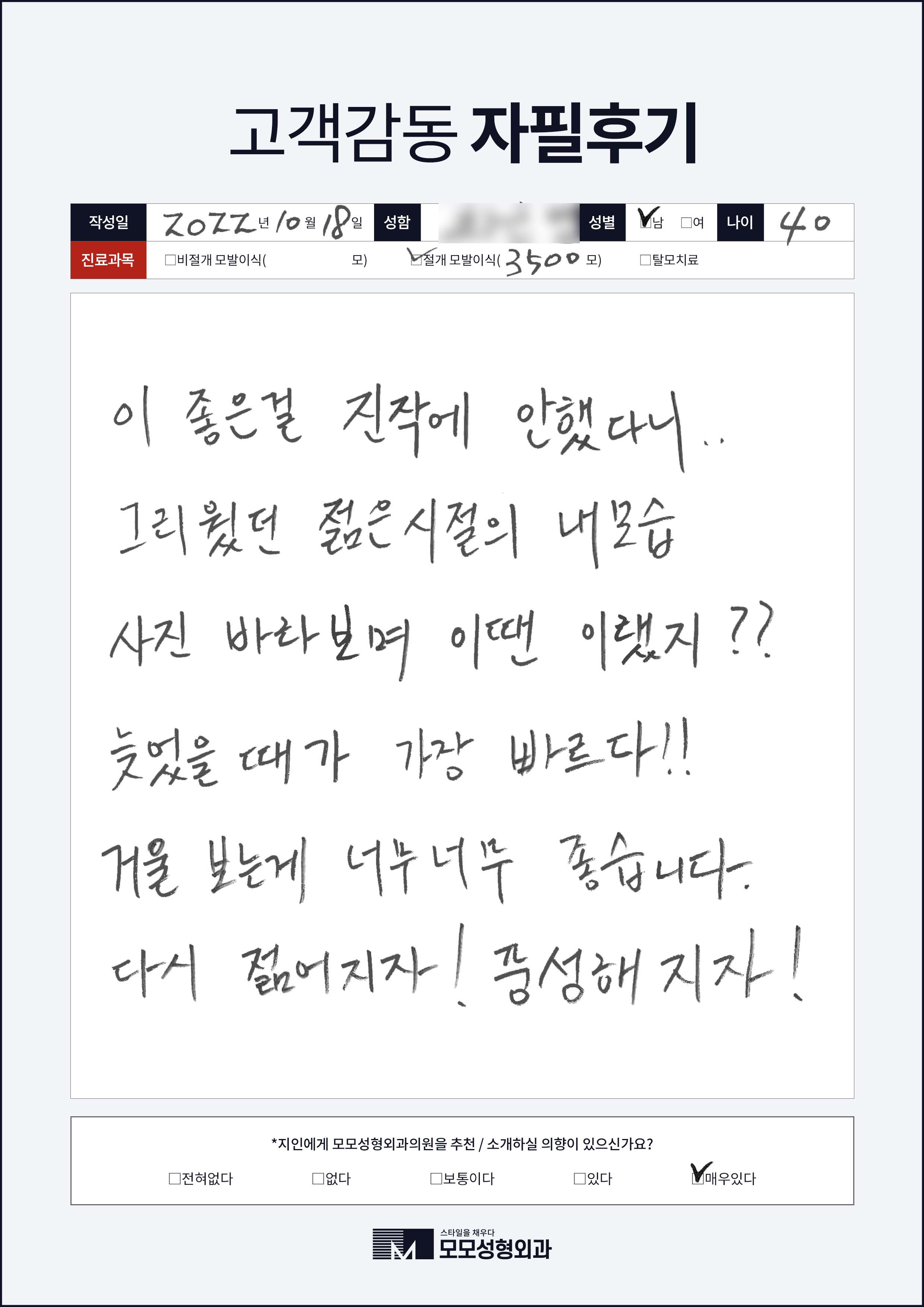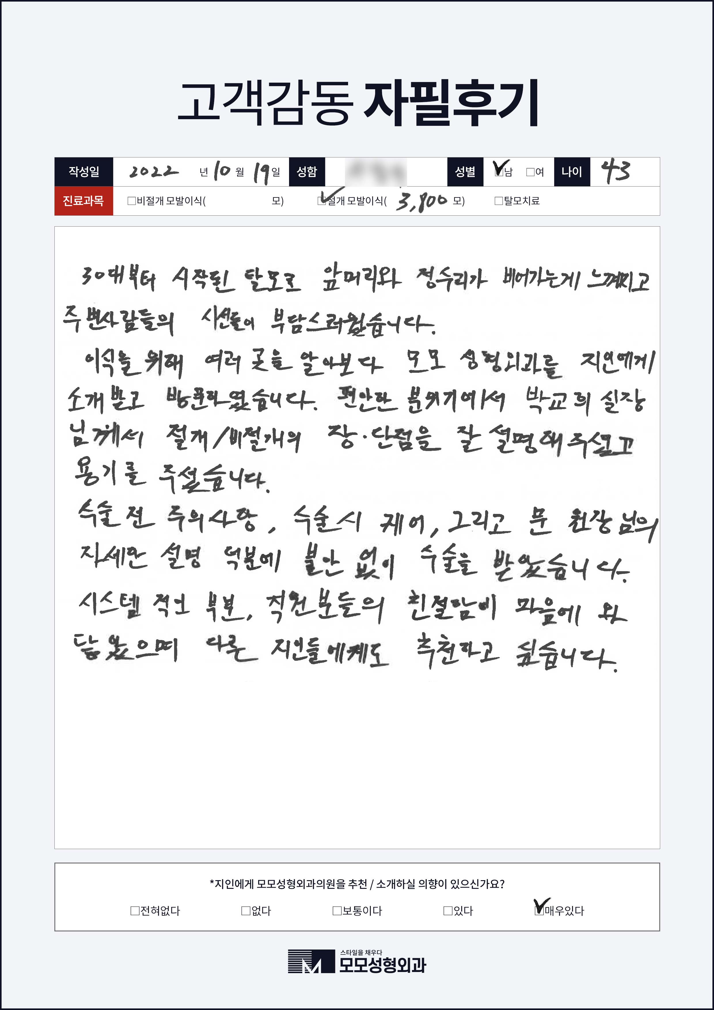 [50대이상]비절개모발이식4000모이상, 전체이마