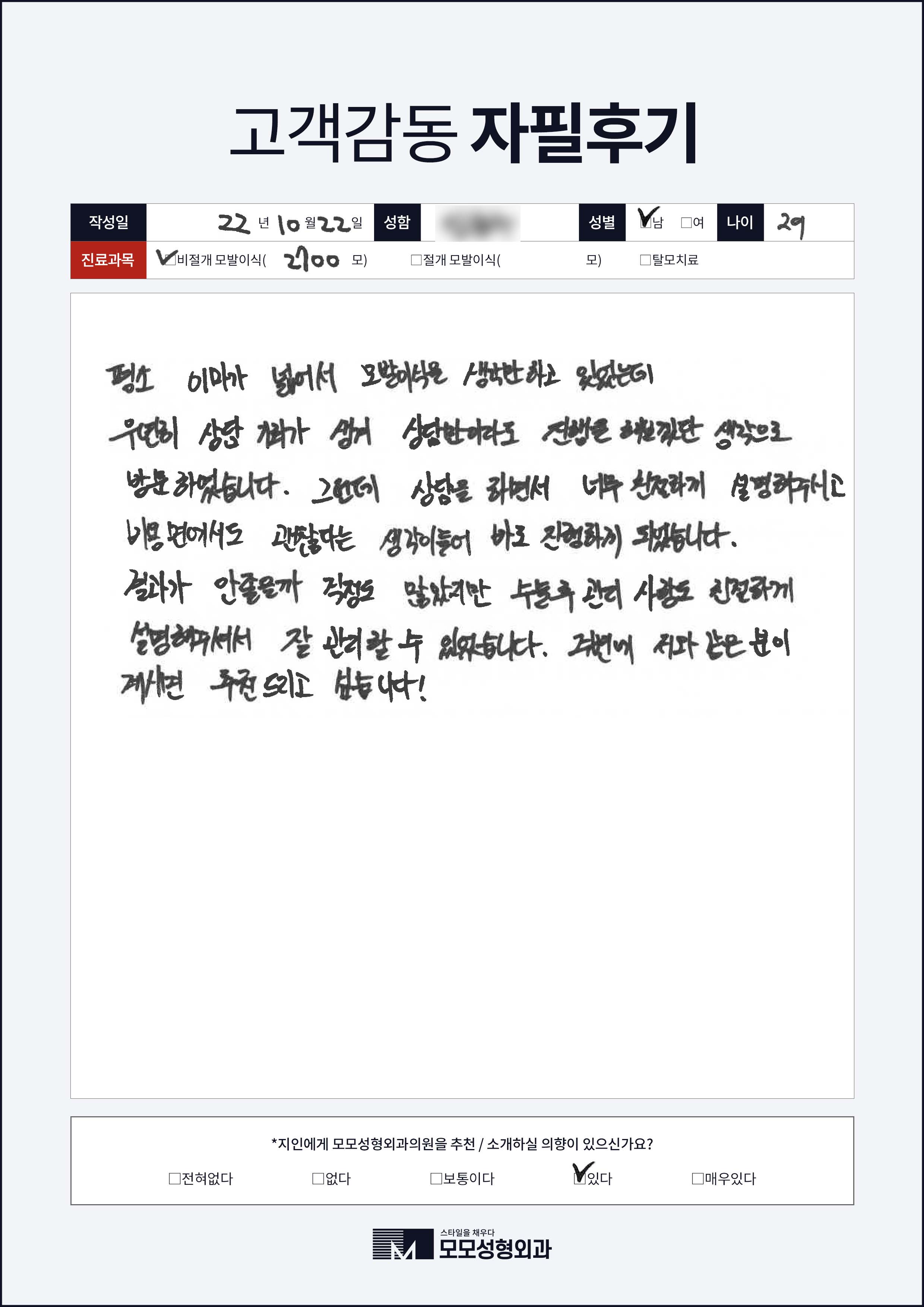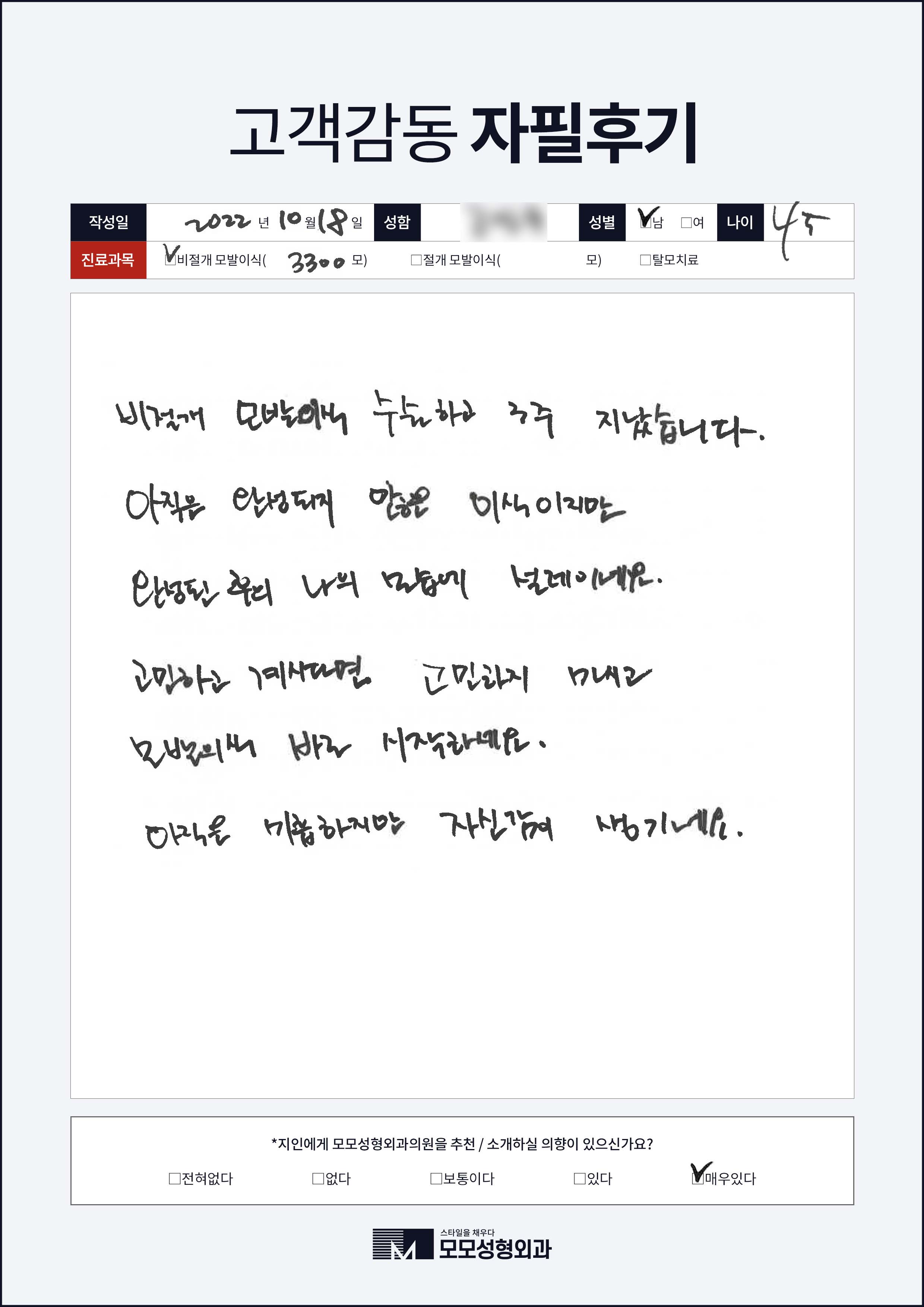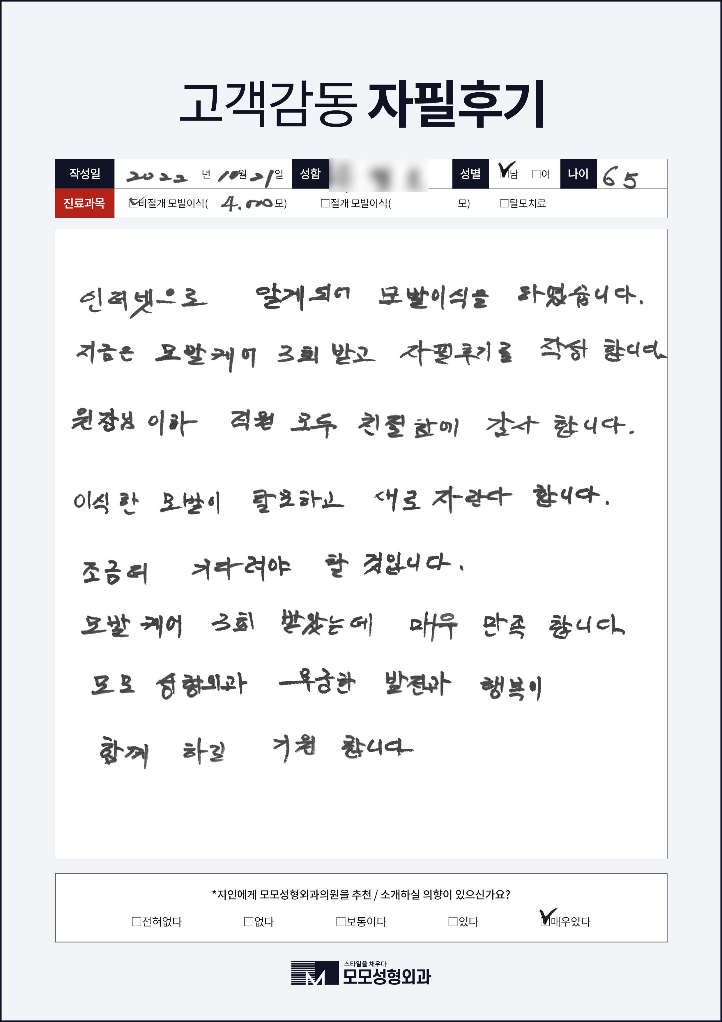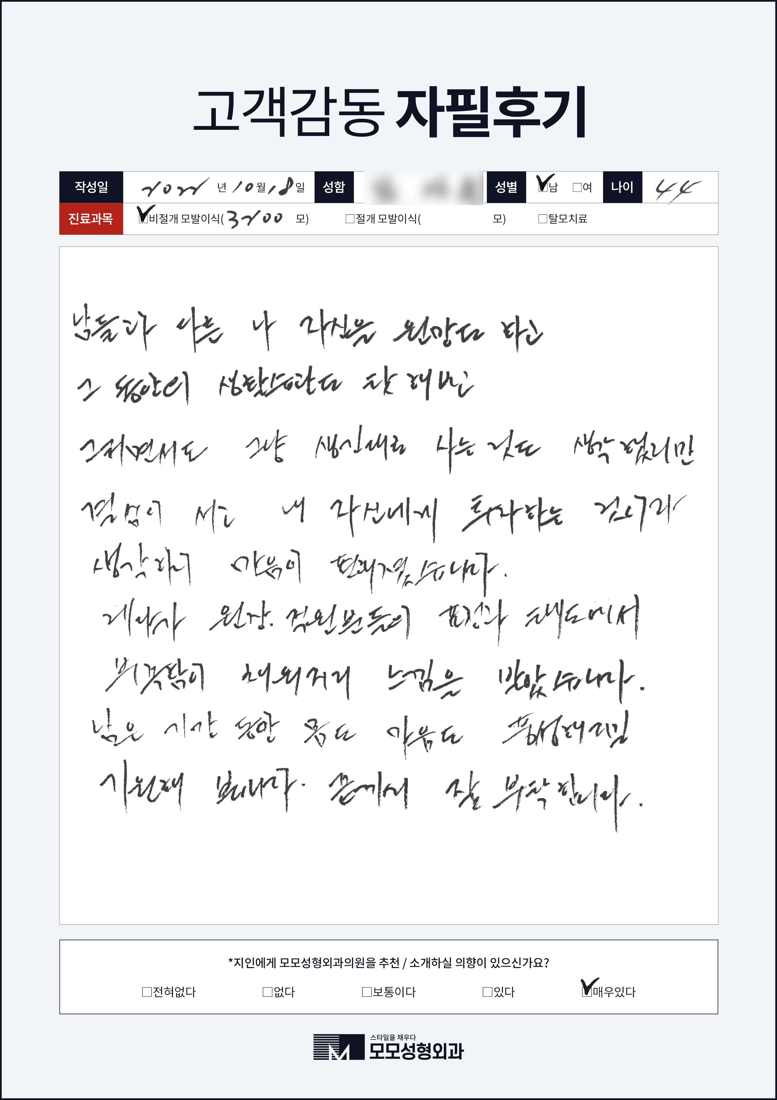 [50대이상]비절개모발이식4000모이상, 전체이마
