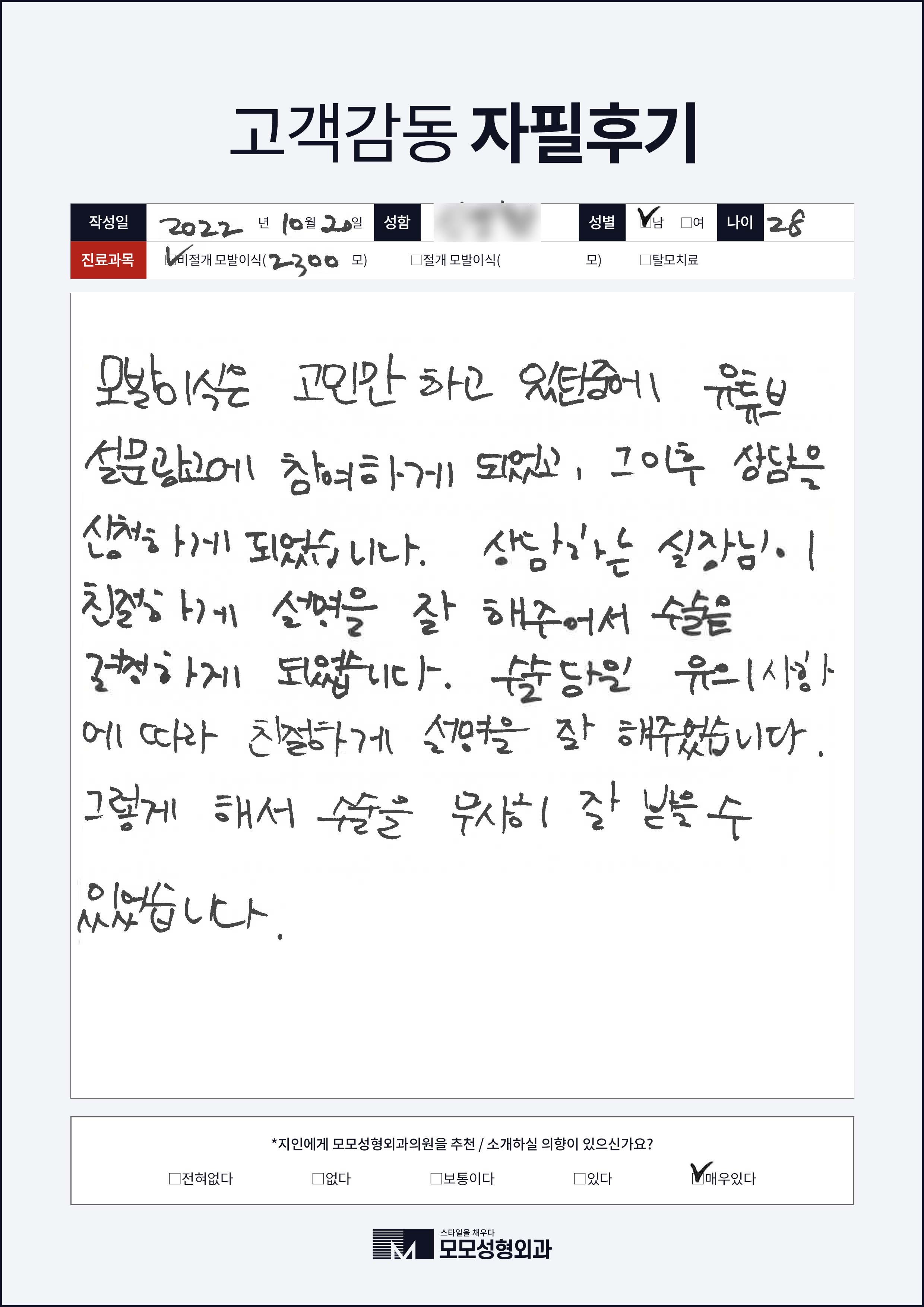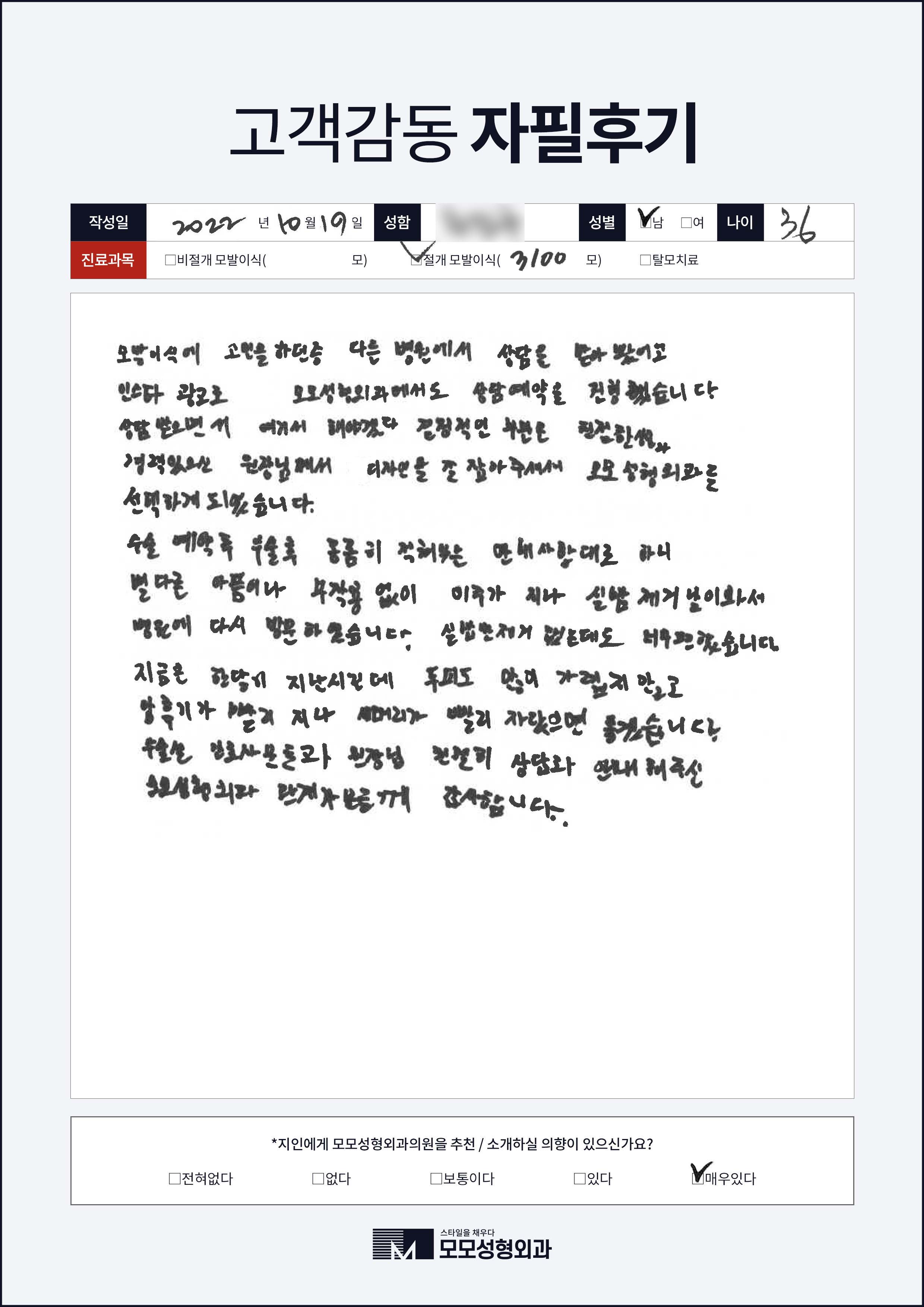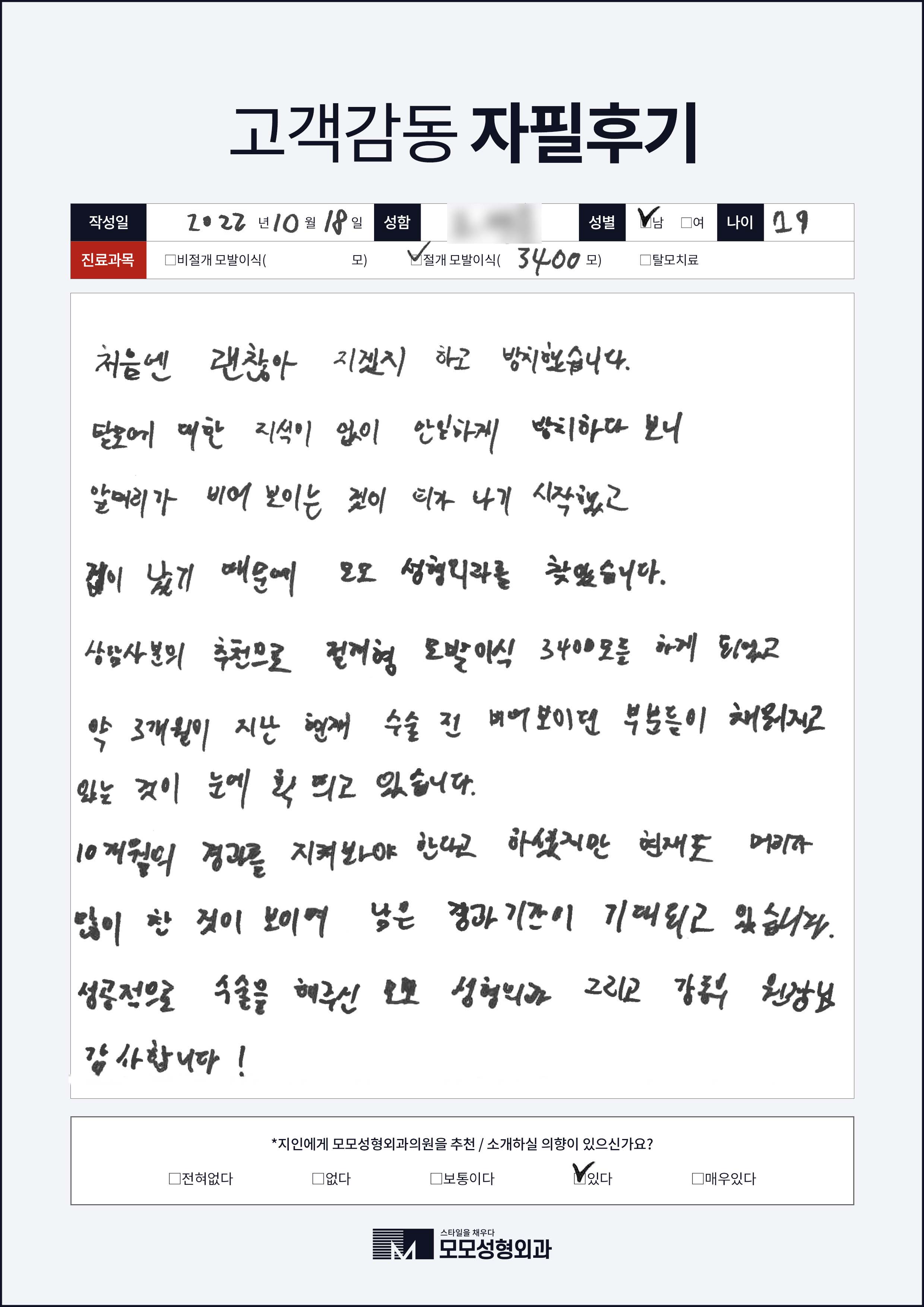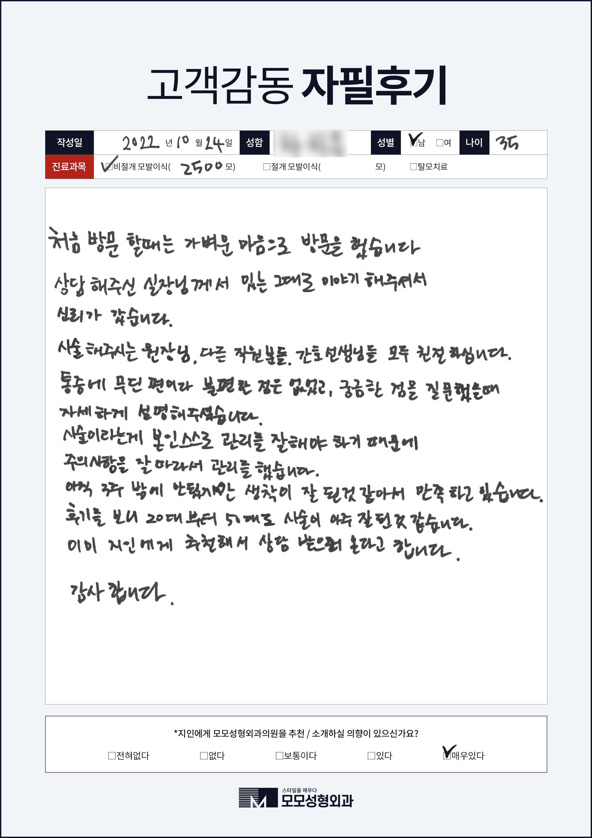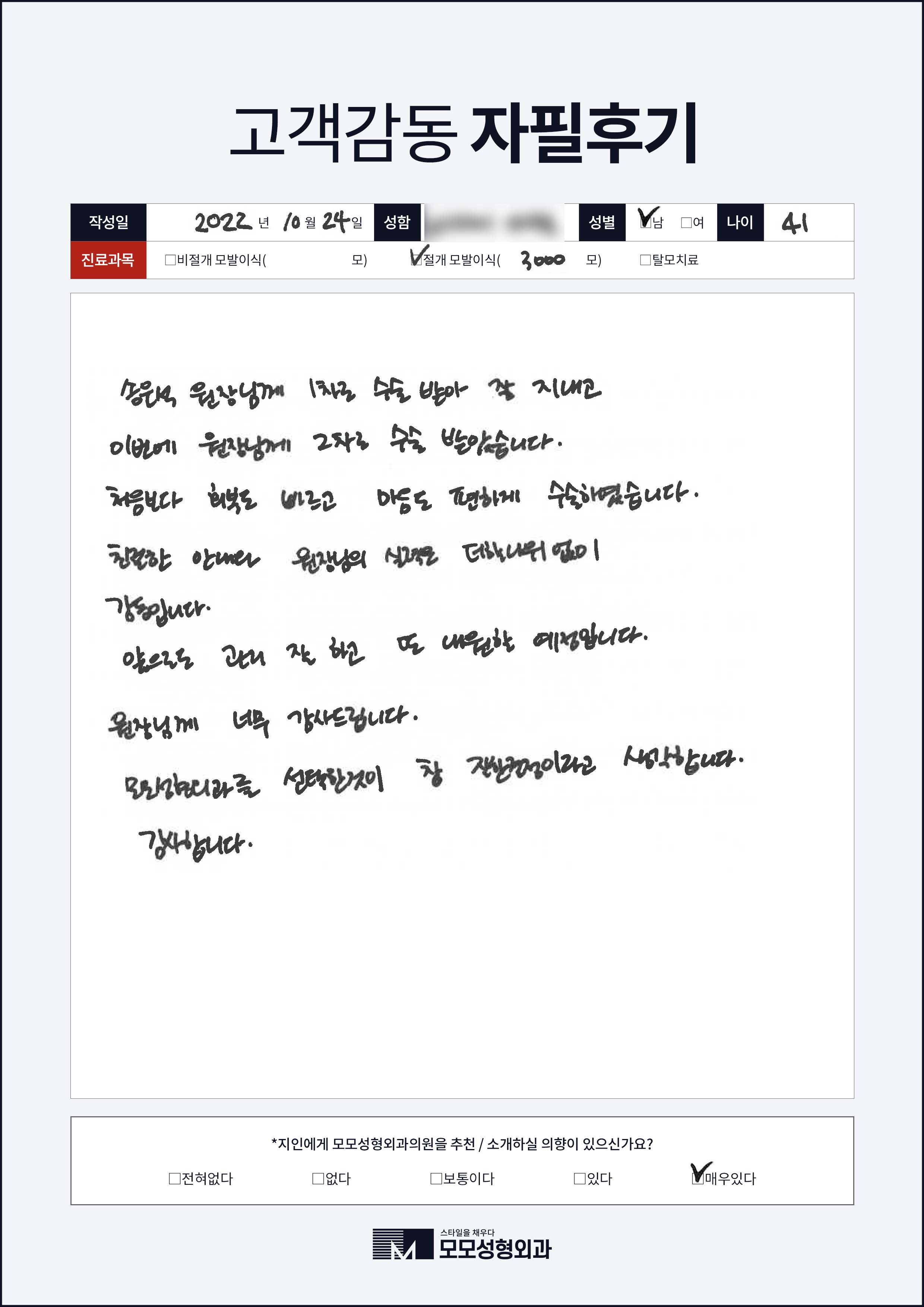 [50대이상]비절개모발이식4000모이상, 전체이마