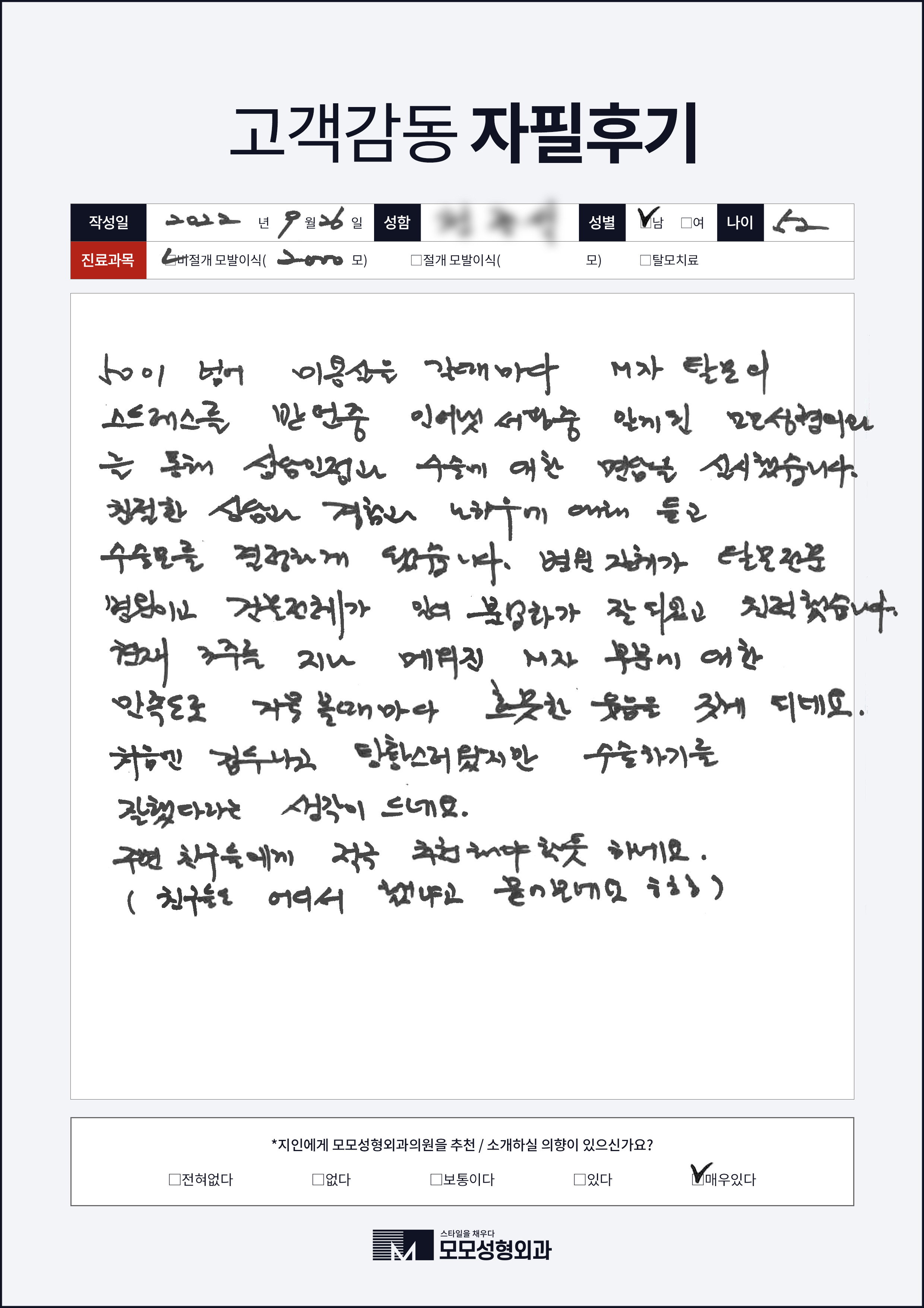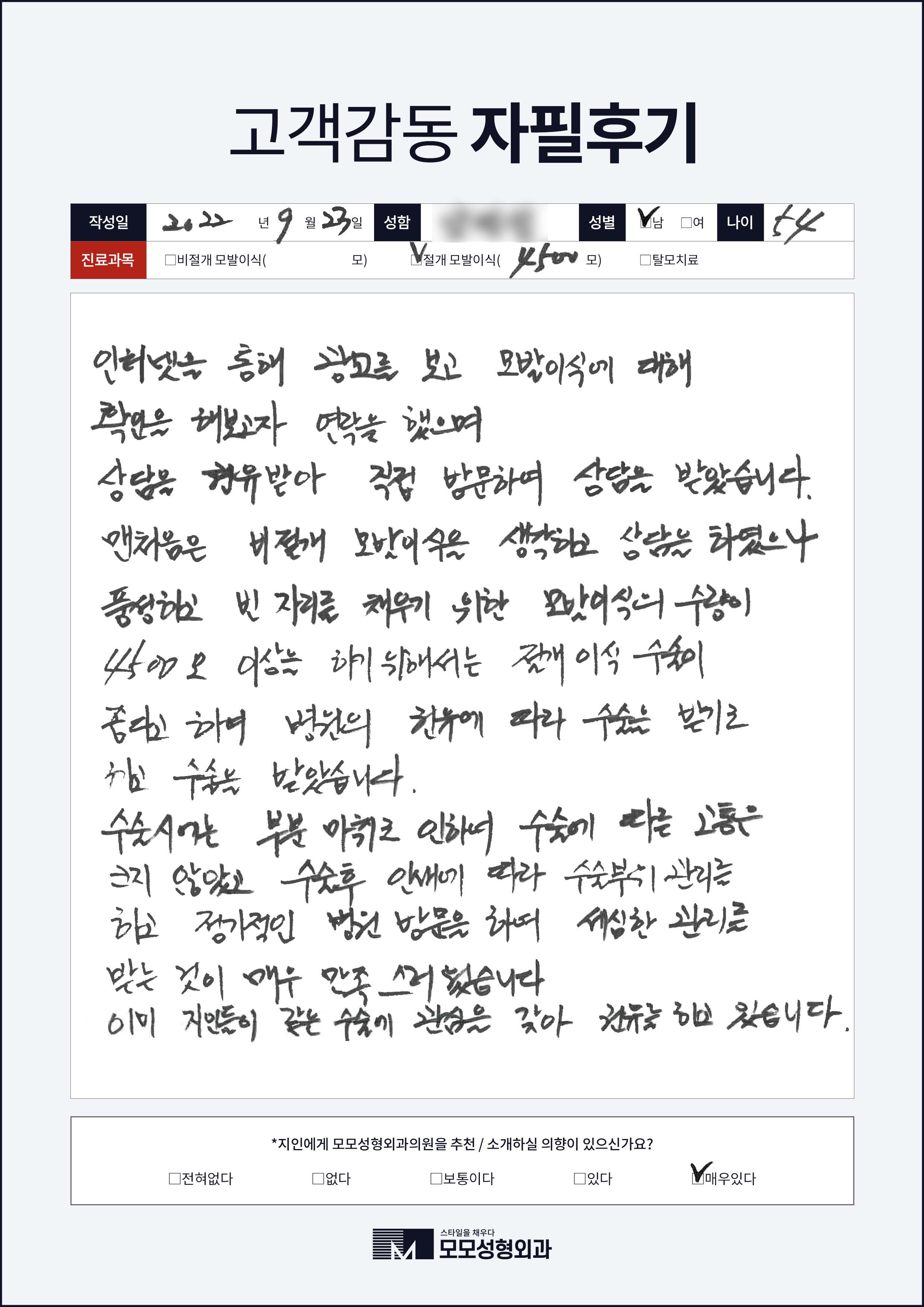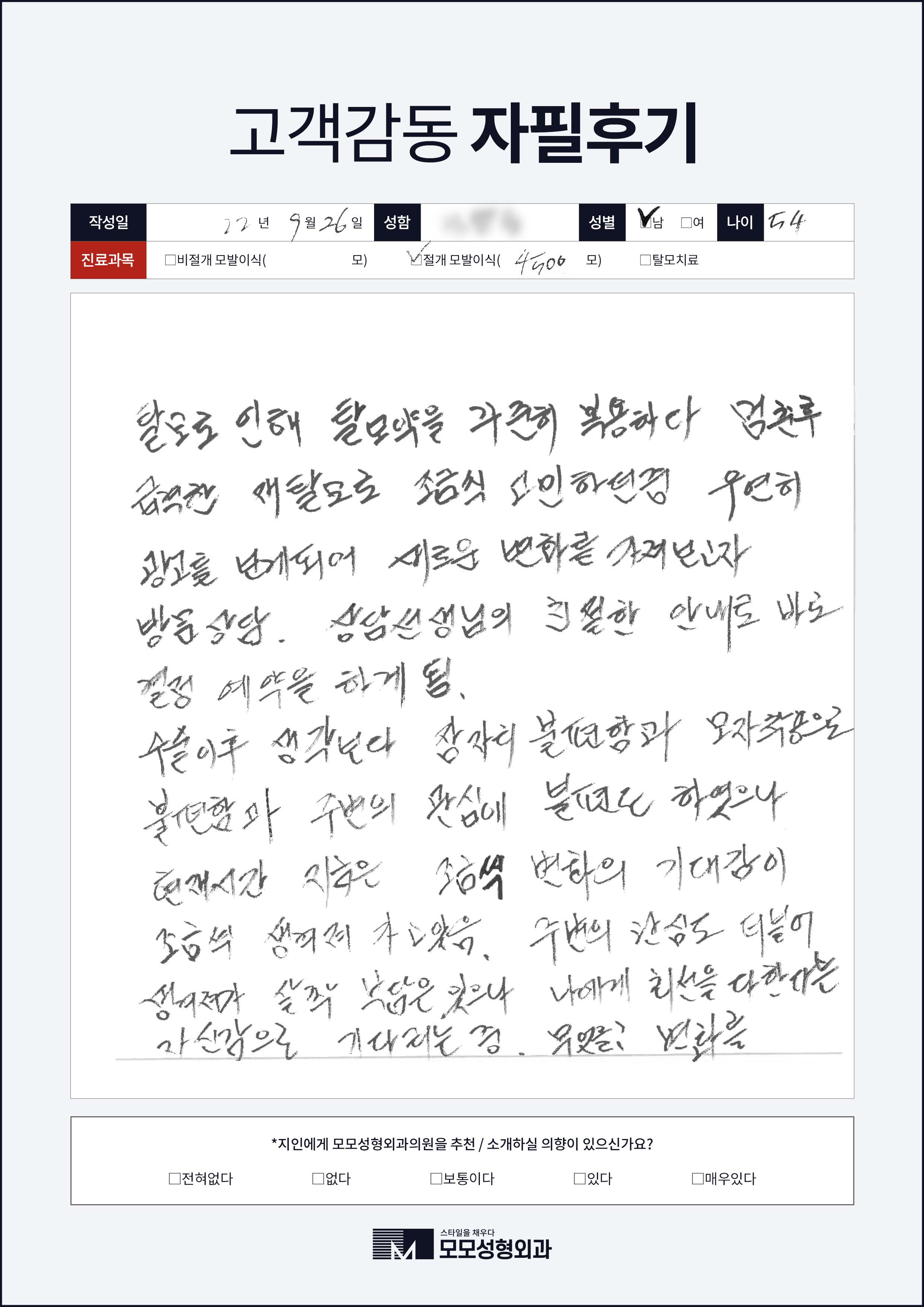 [50대이상]절개모발이식4000모이상, 높은M자이마