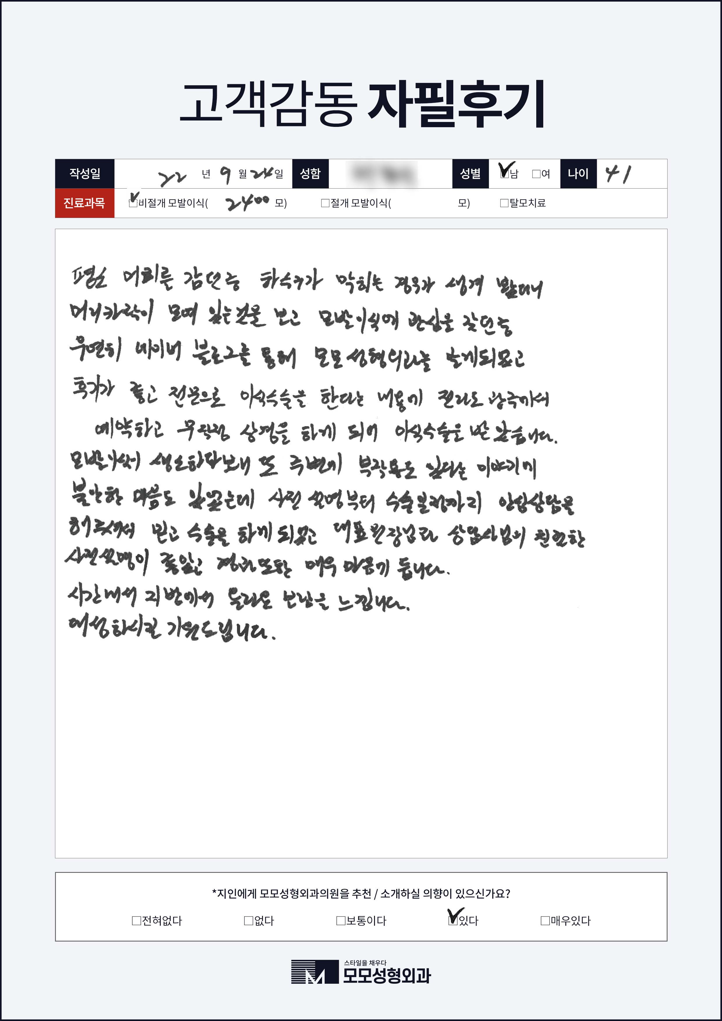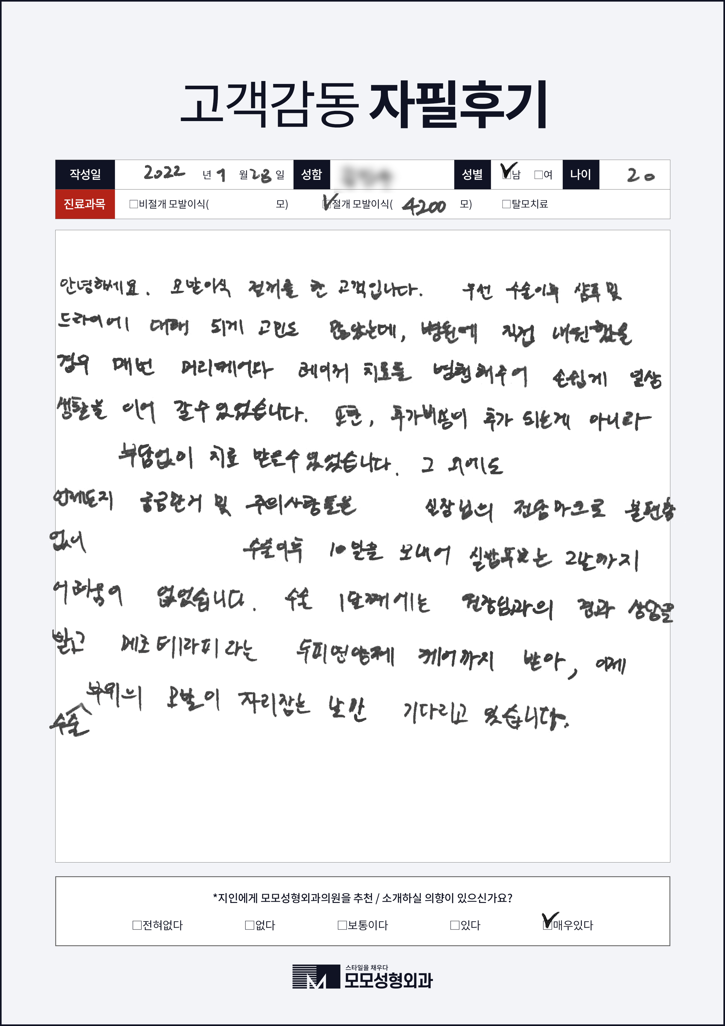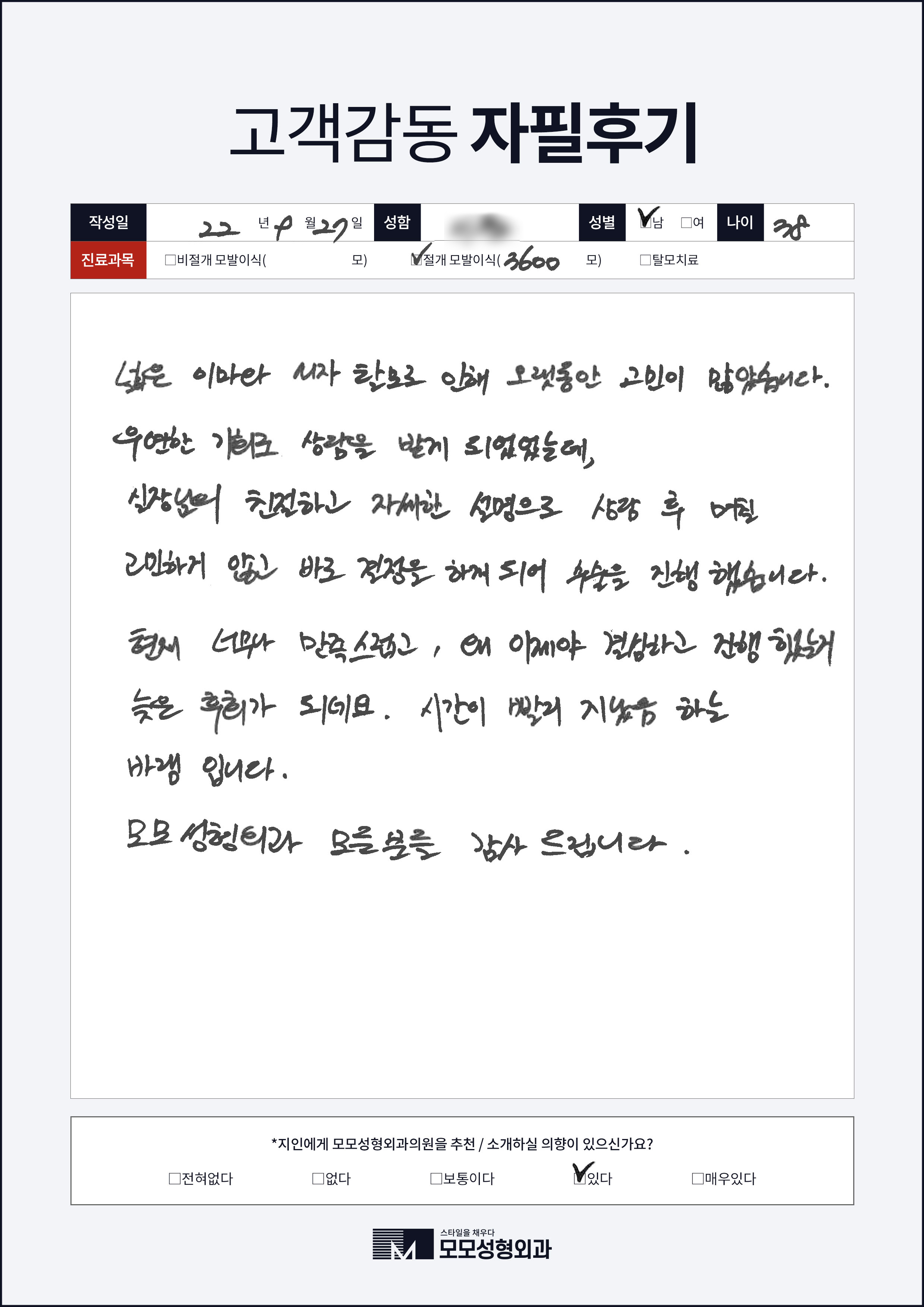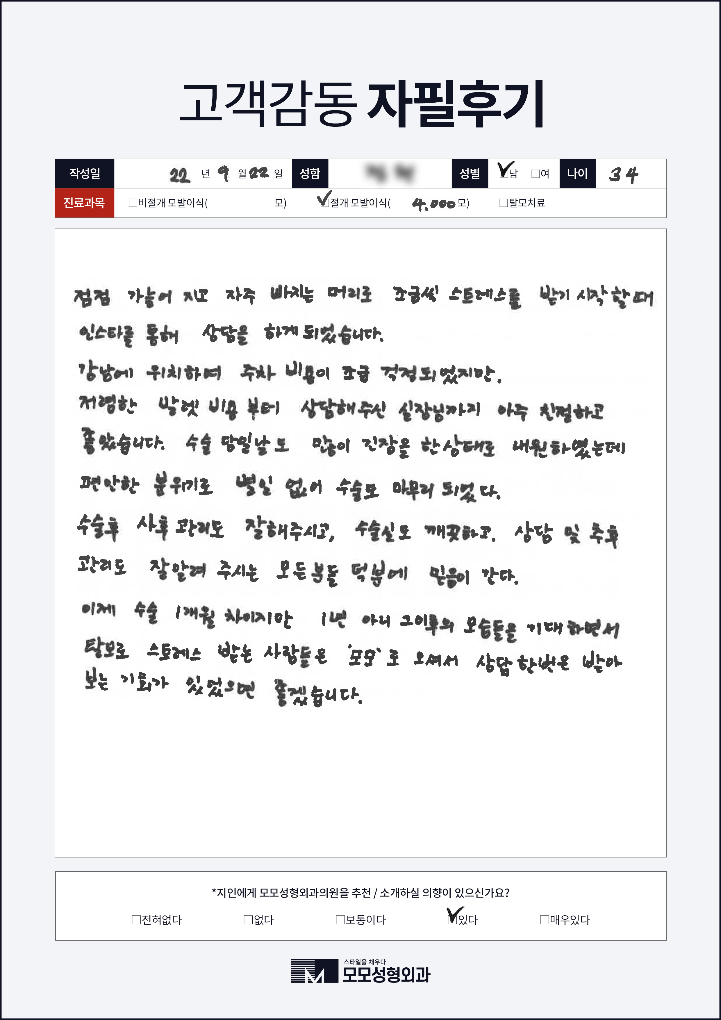 [50대이상]절개모발이식4000모이상, 높은M자이마