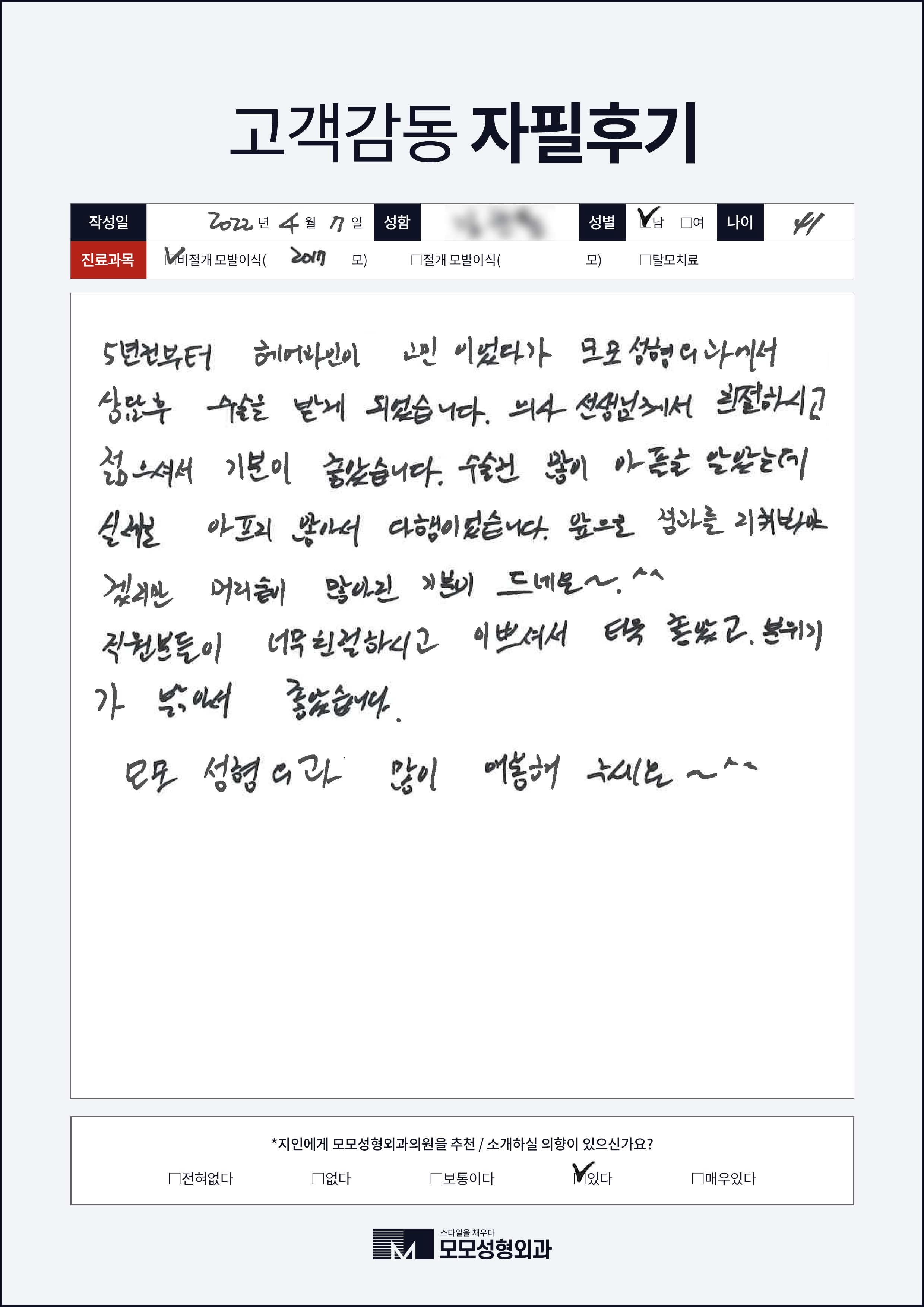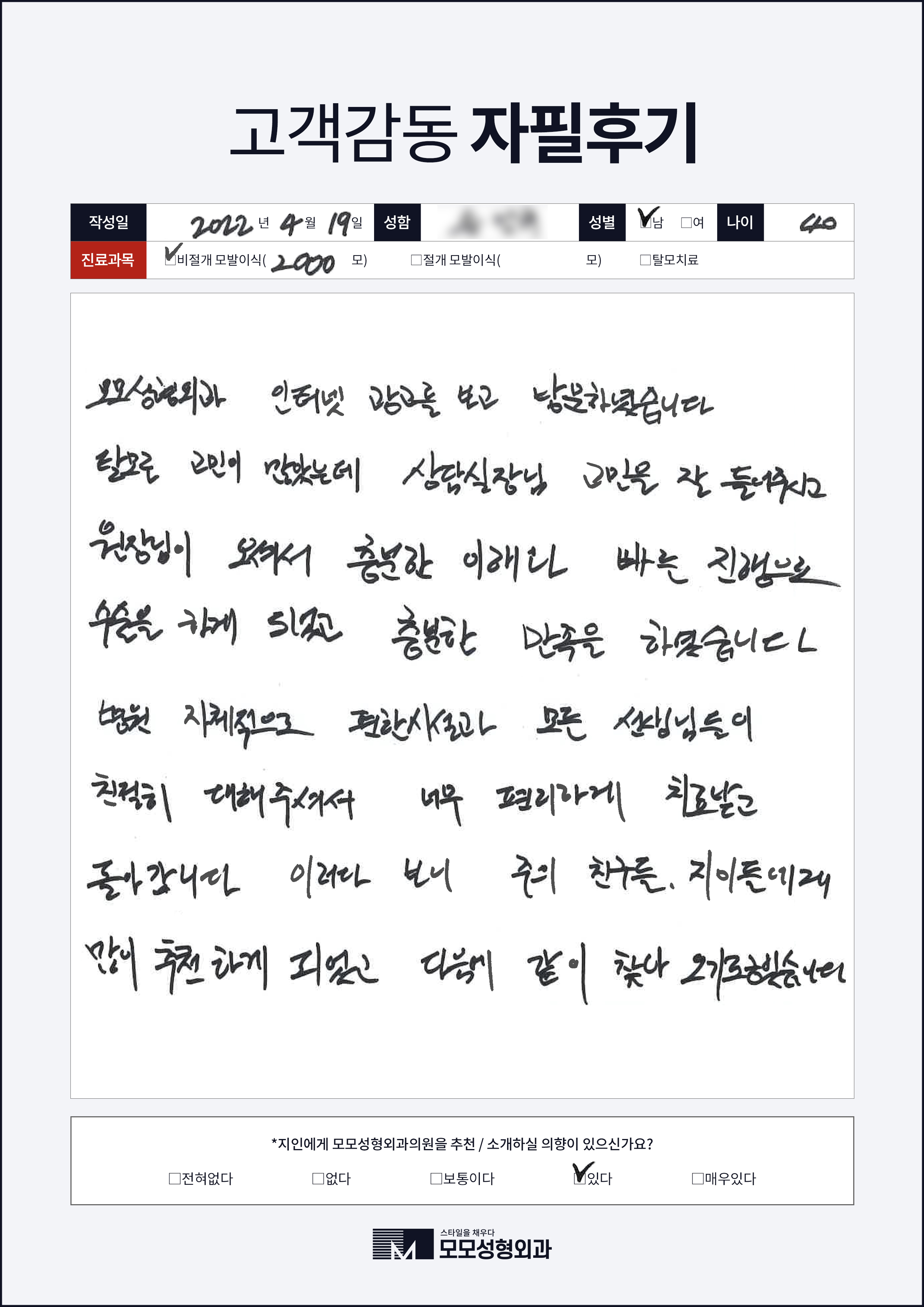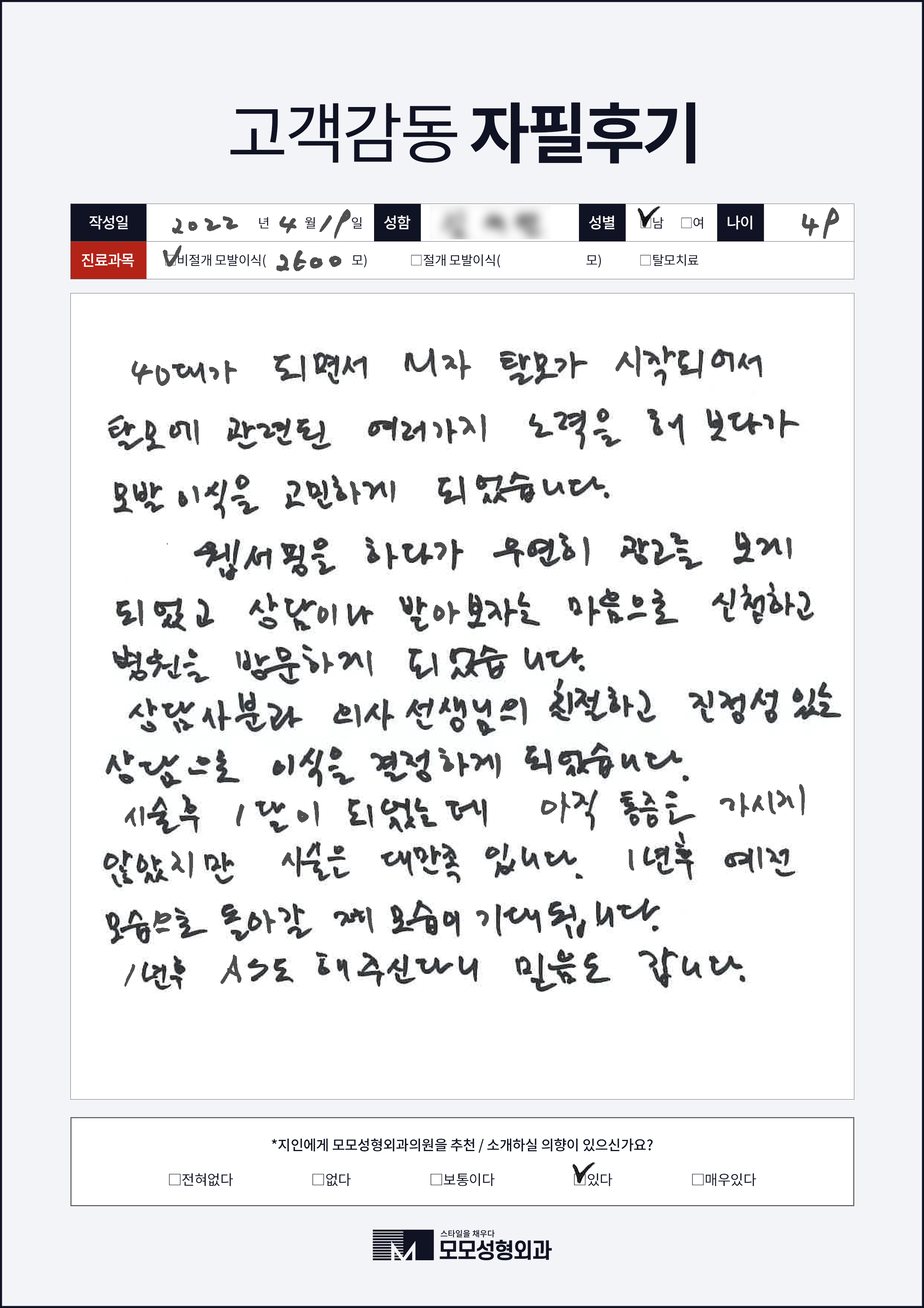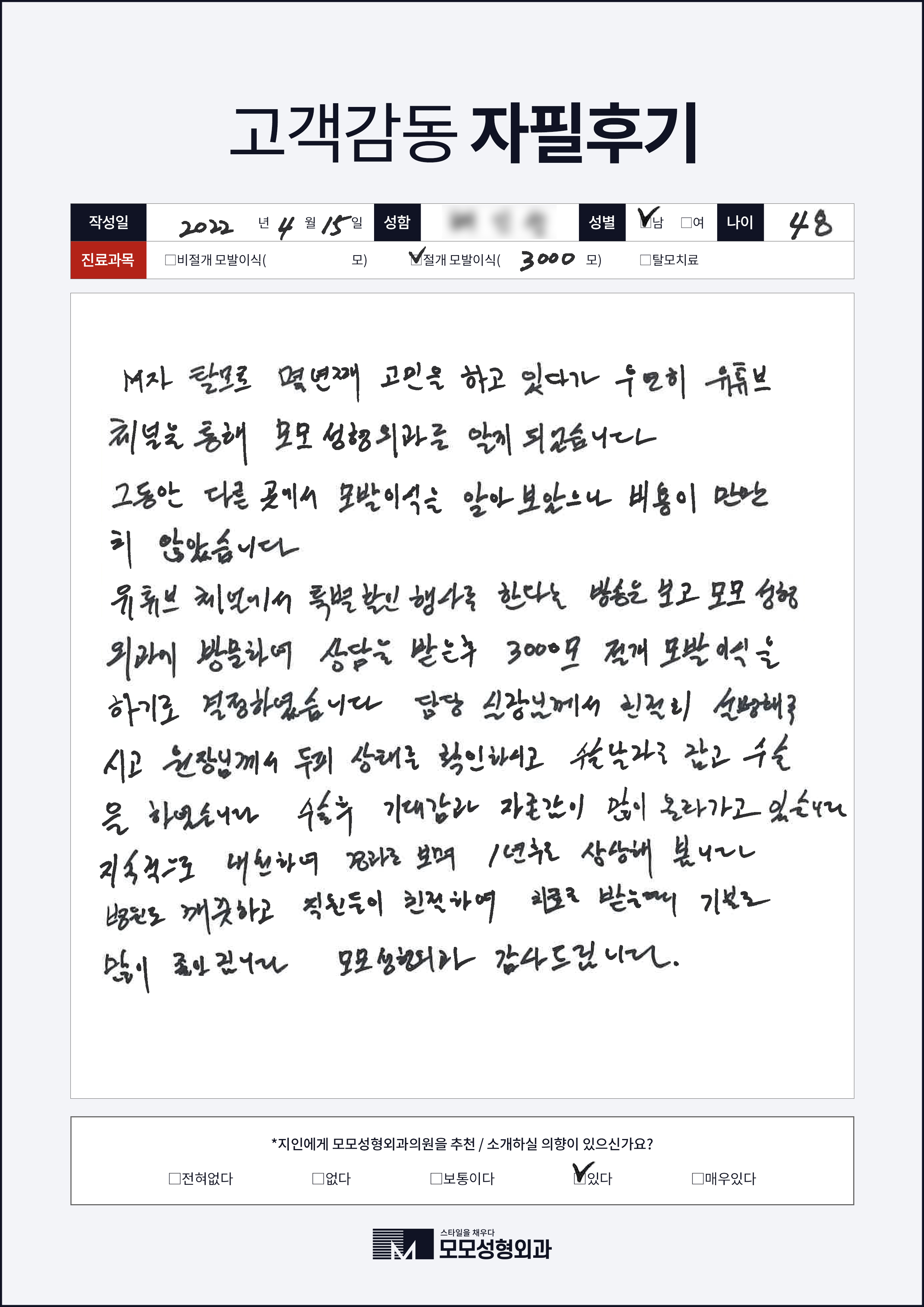 [40대]절개모발이식3000모, M자이마