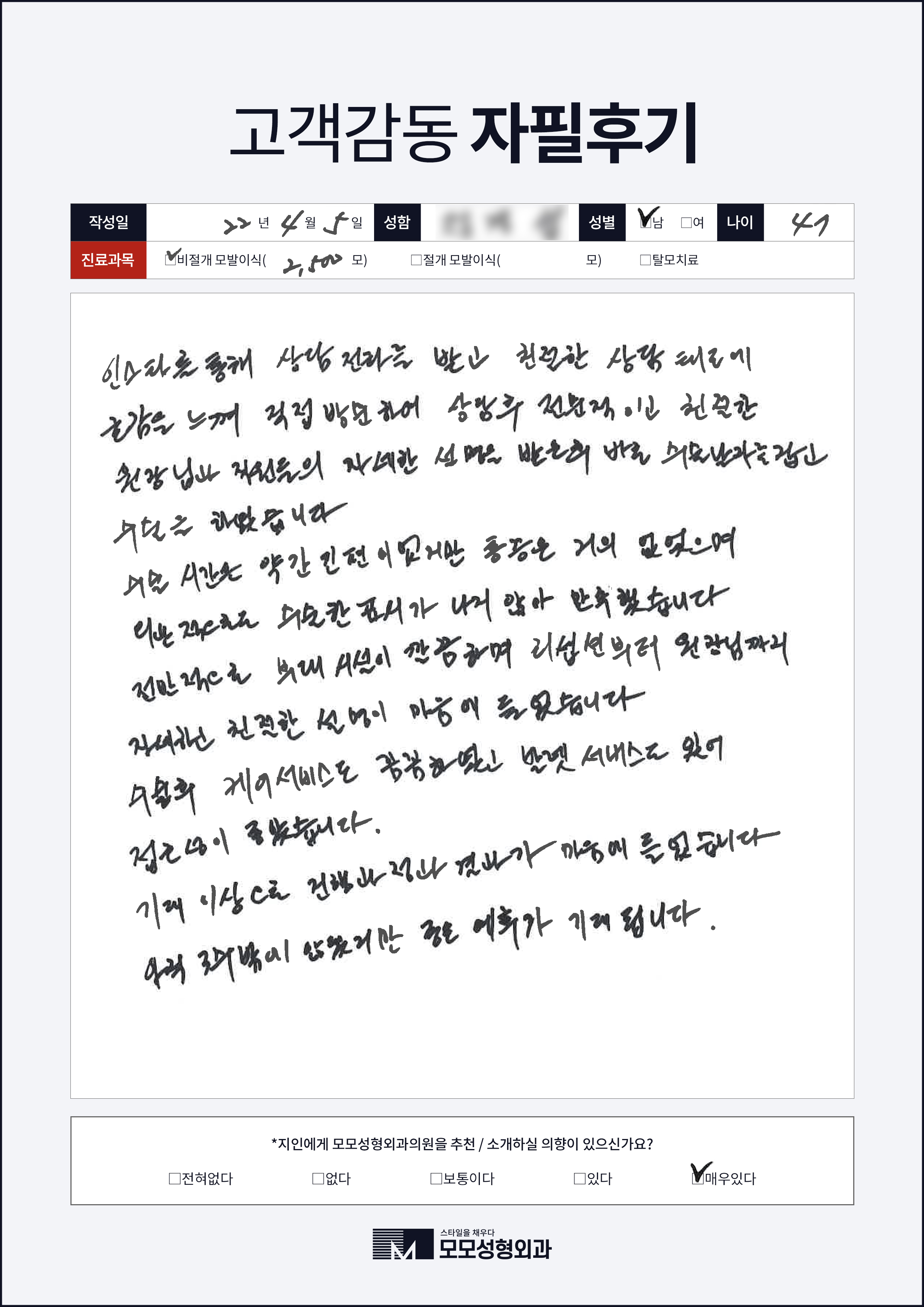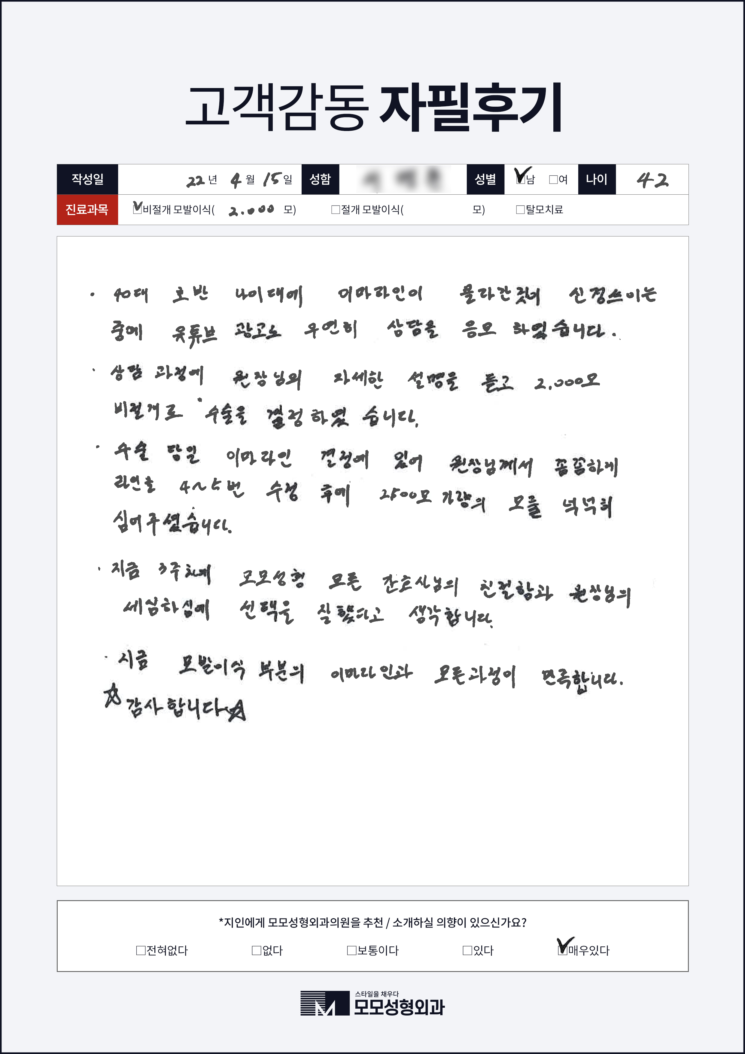 [40대]비절개모발이식2000모, M자이마
