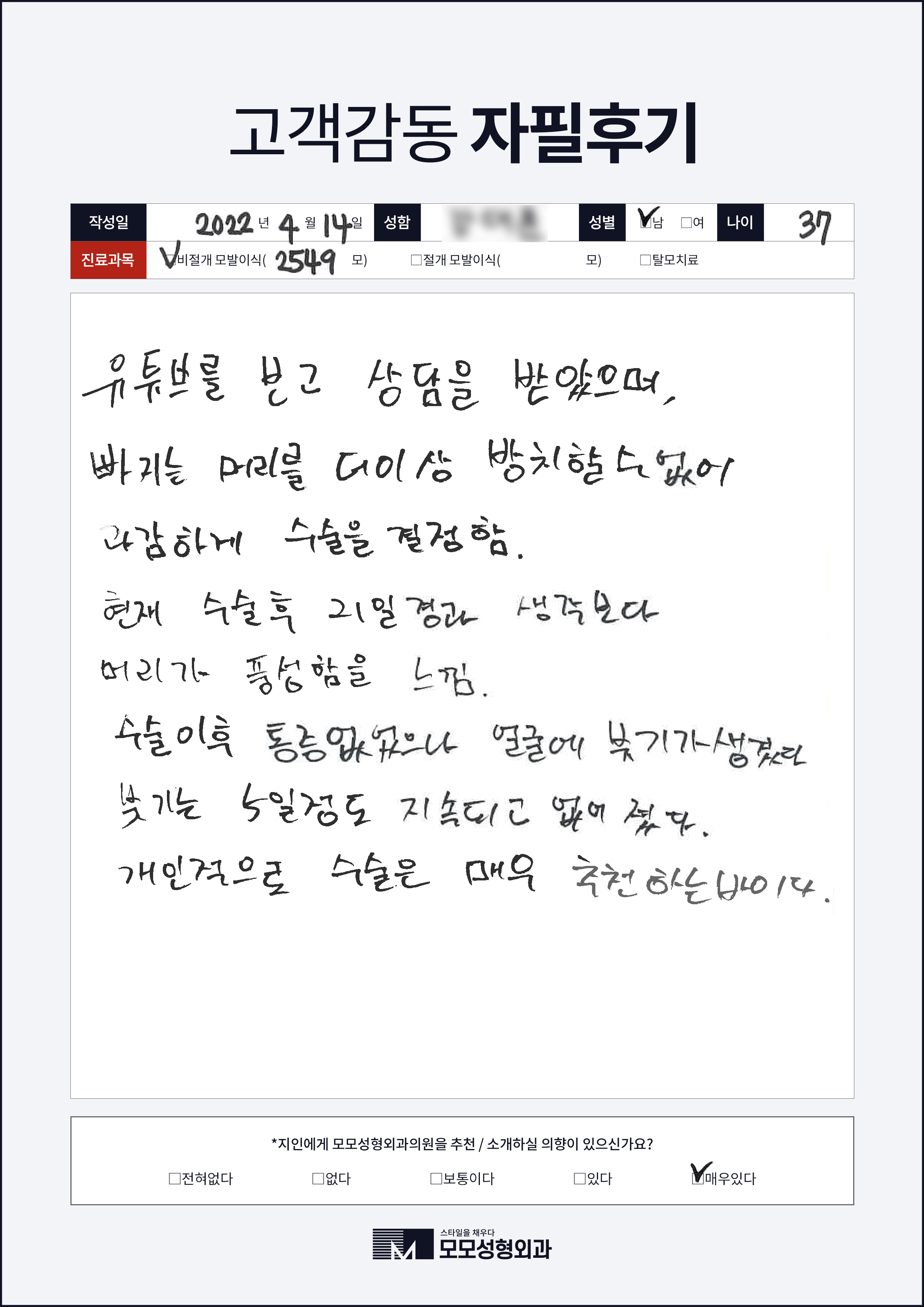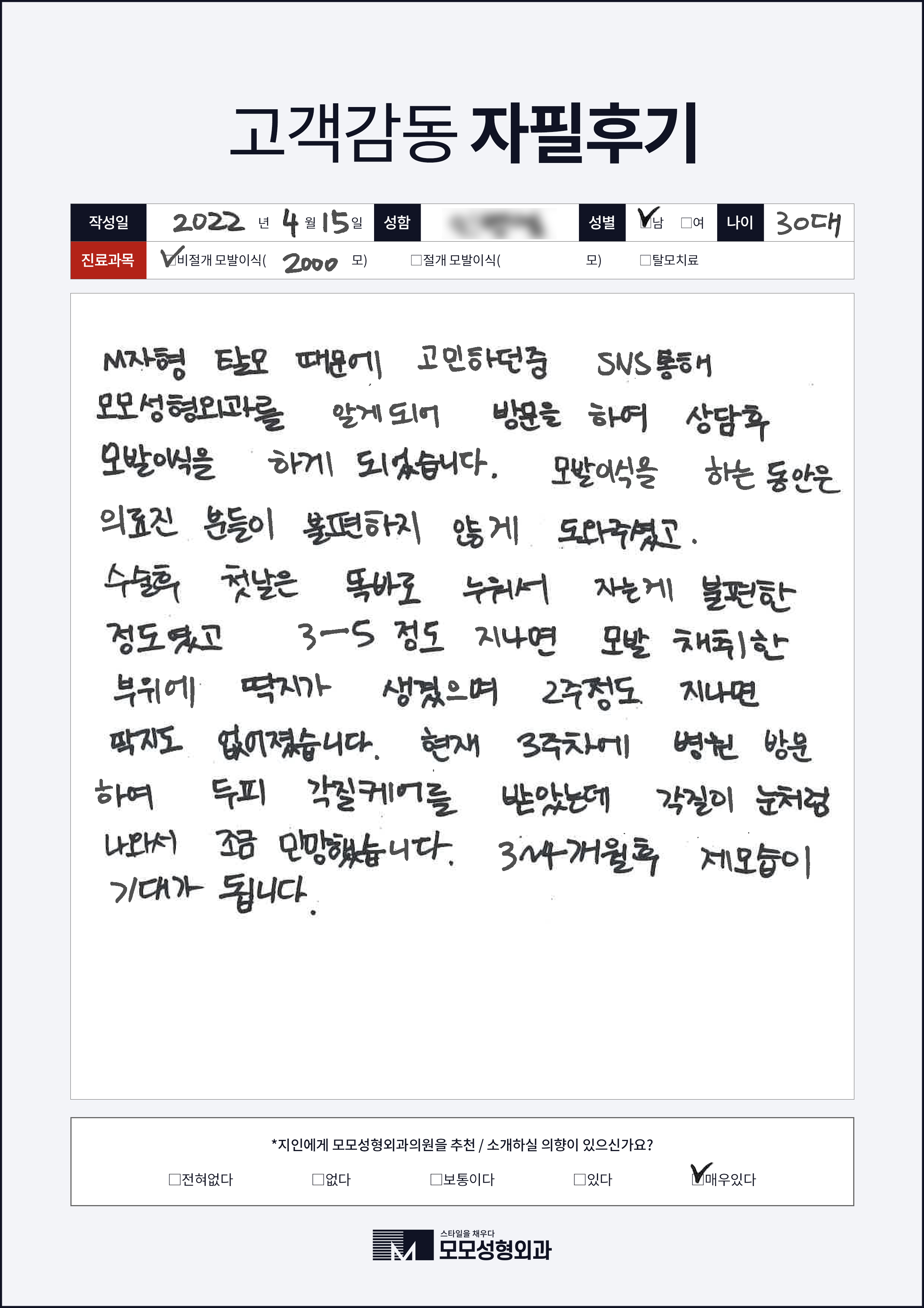 [30대]비절개모발이식2000모, M자이마