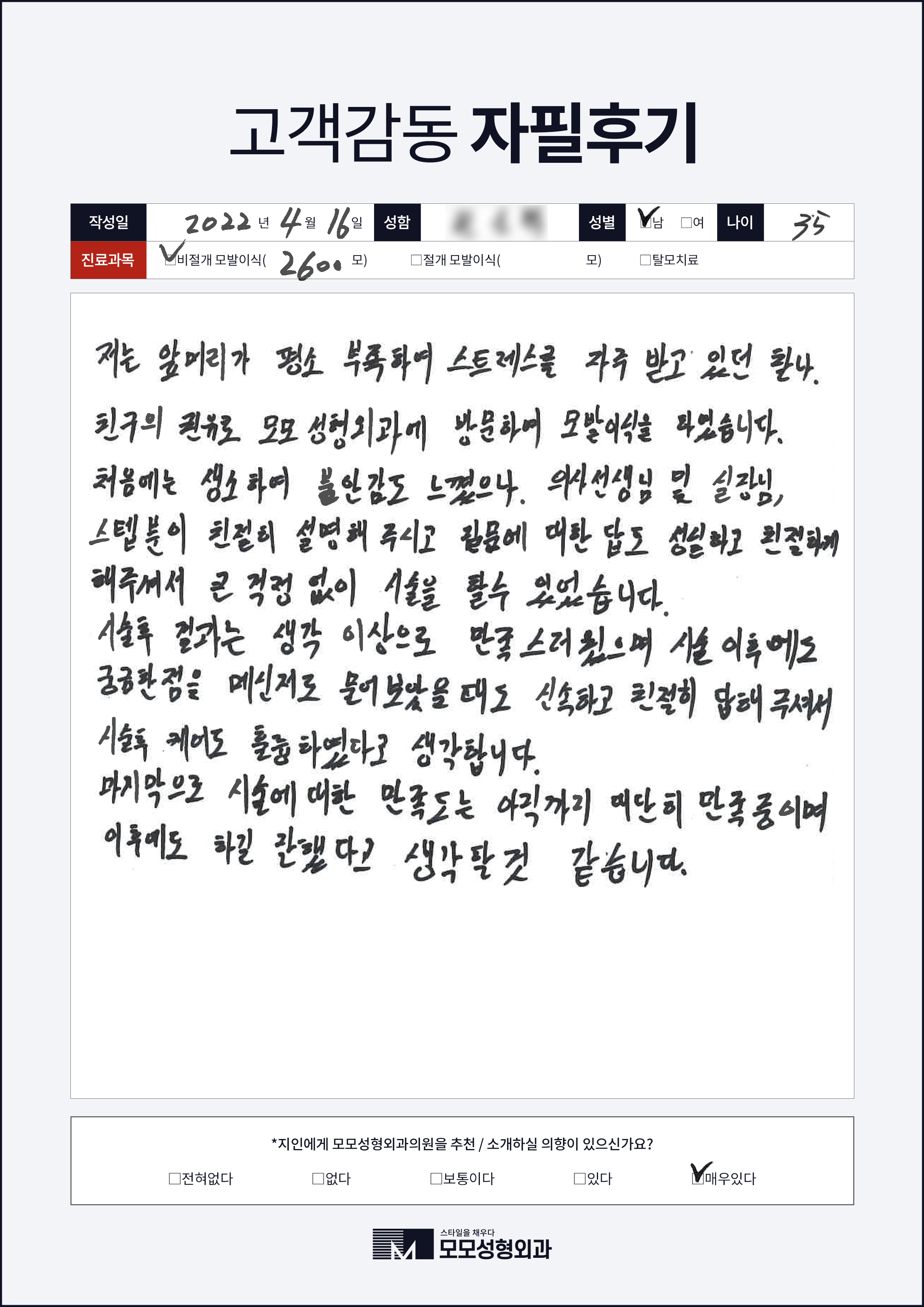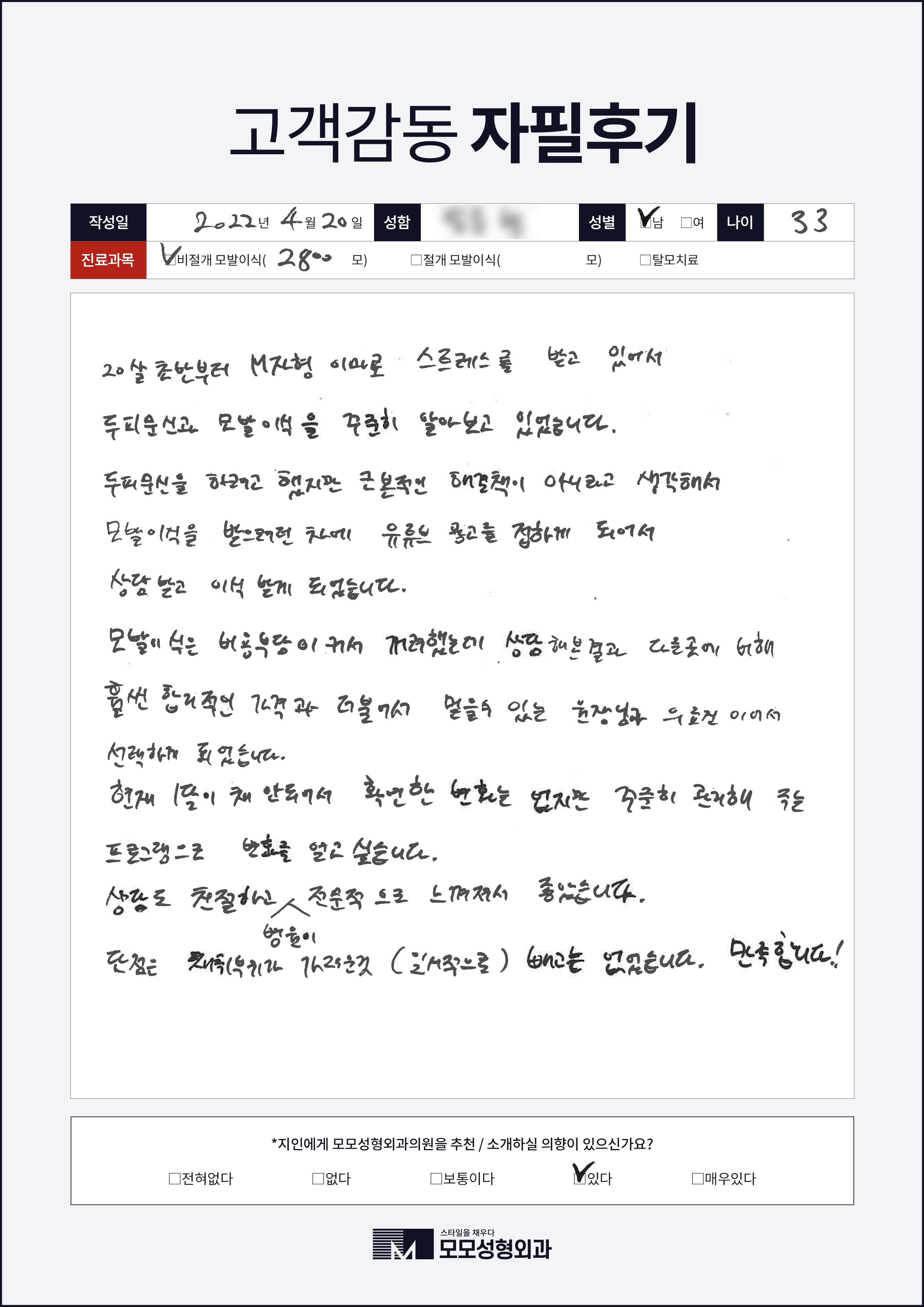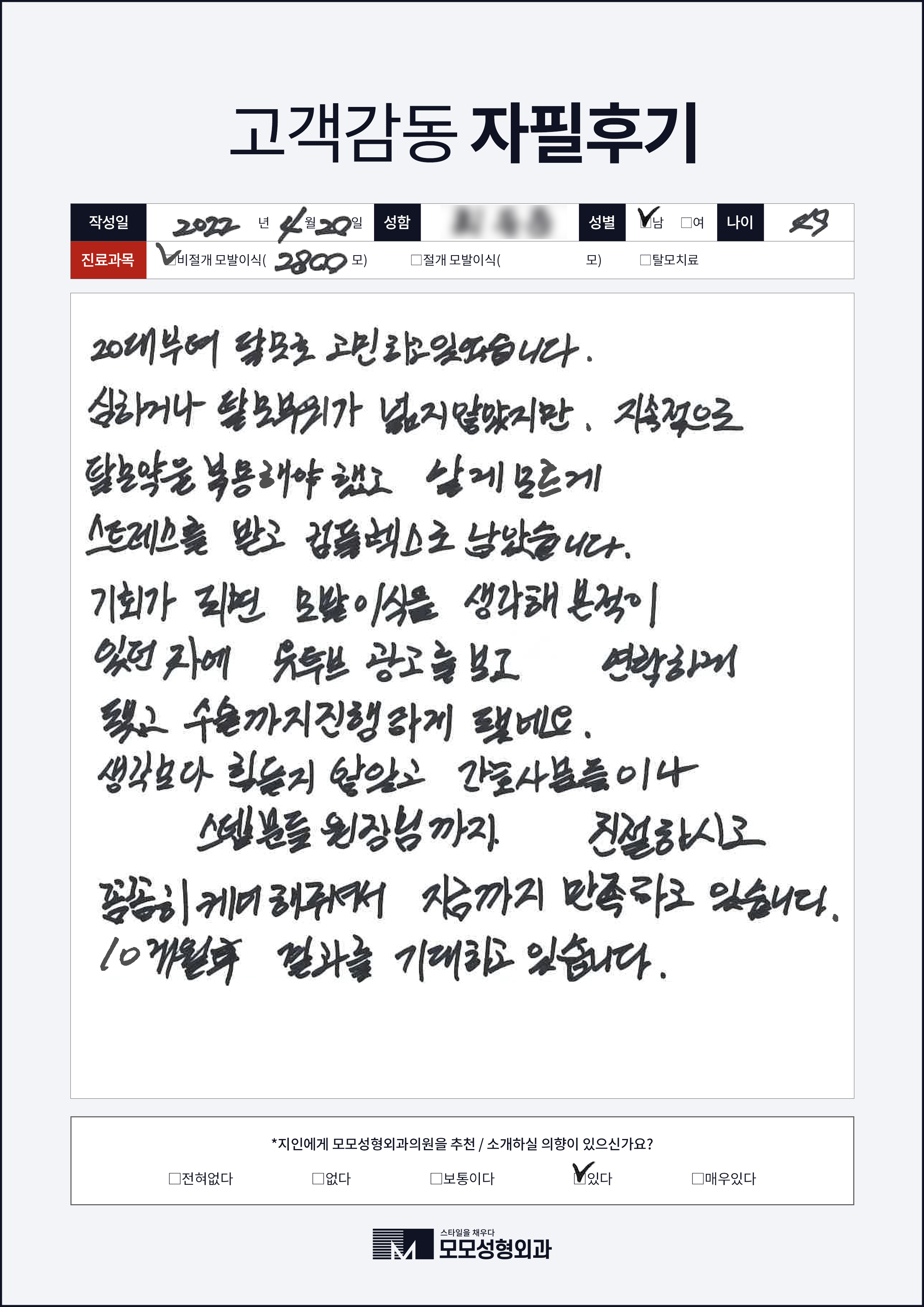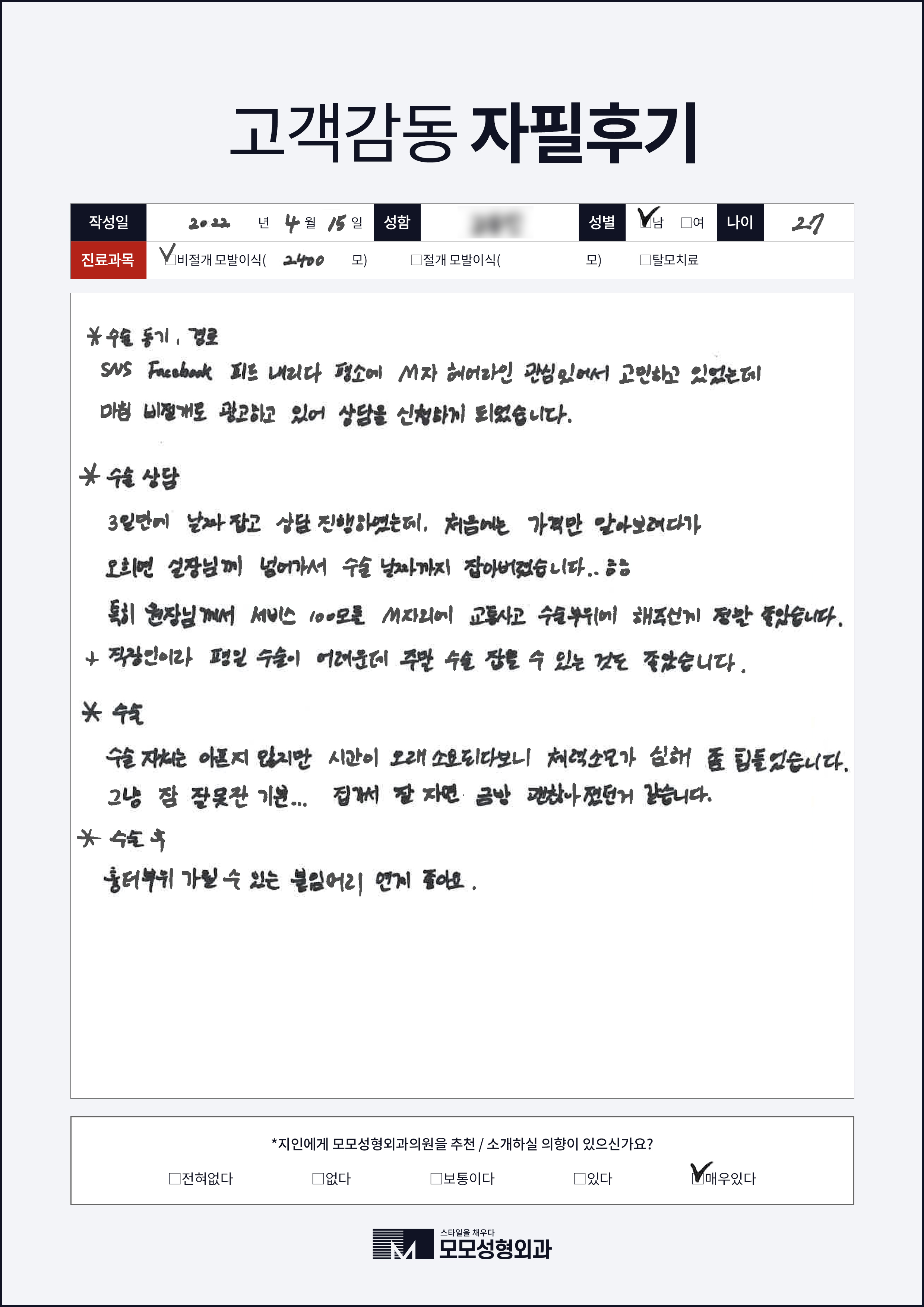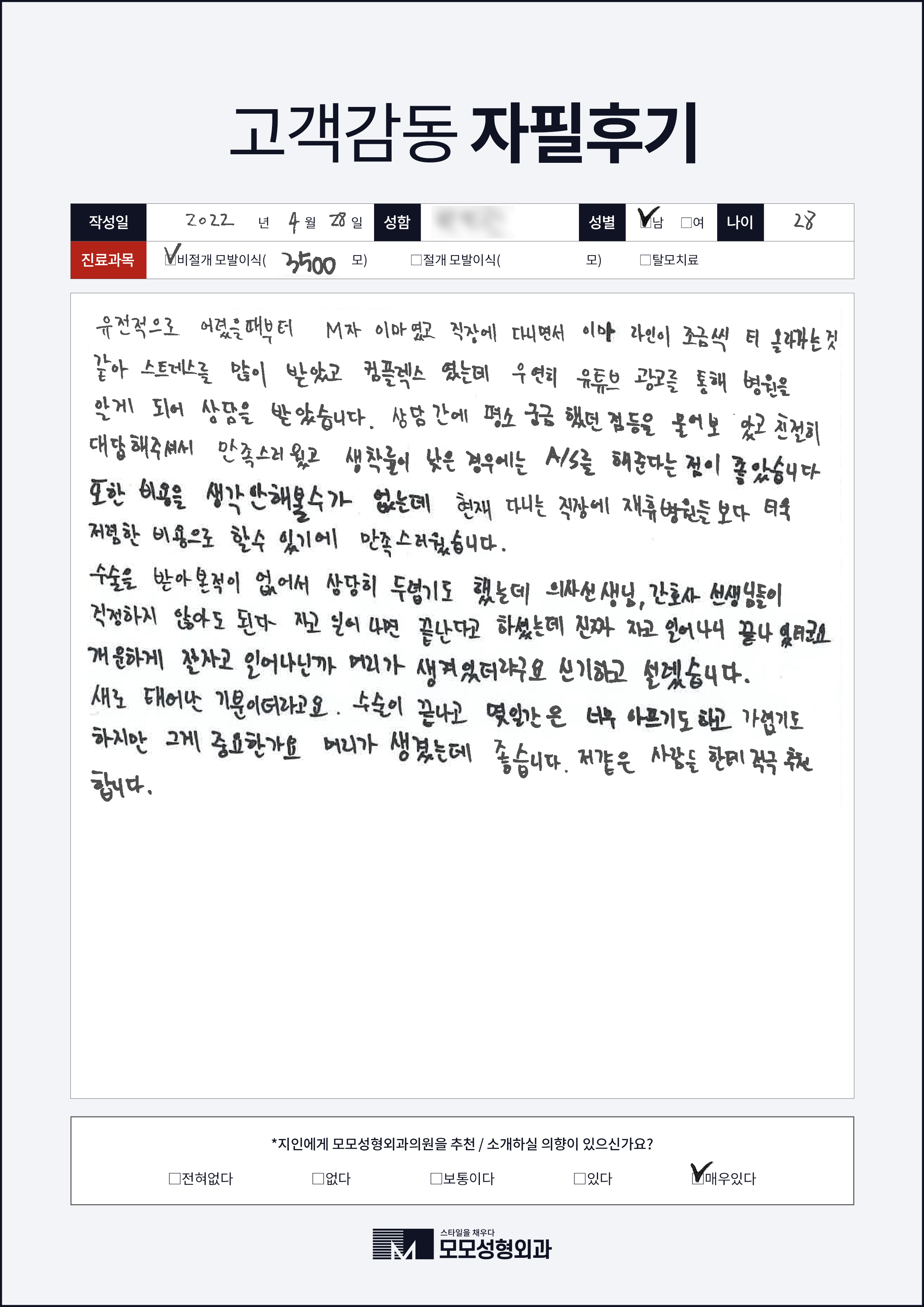 [20대]비절개모발이식3000모, M자이마