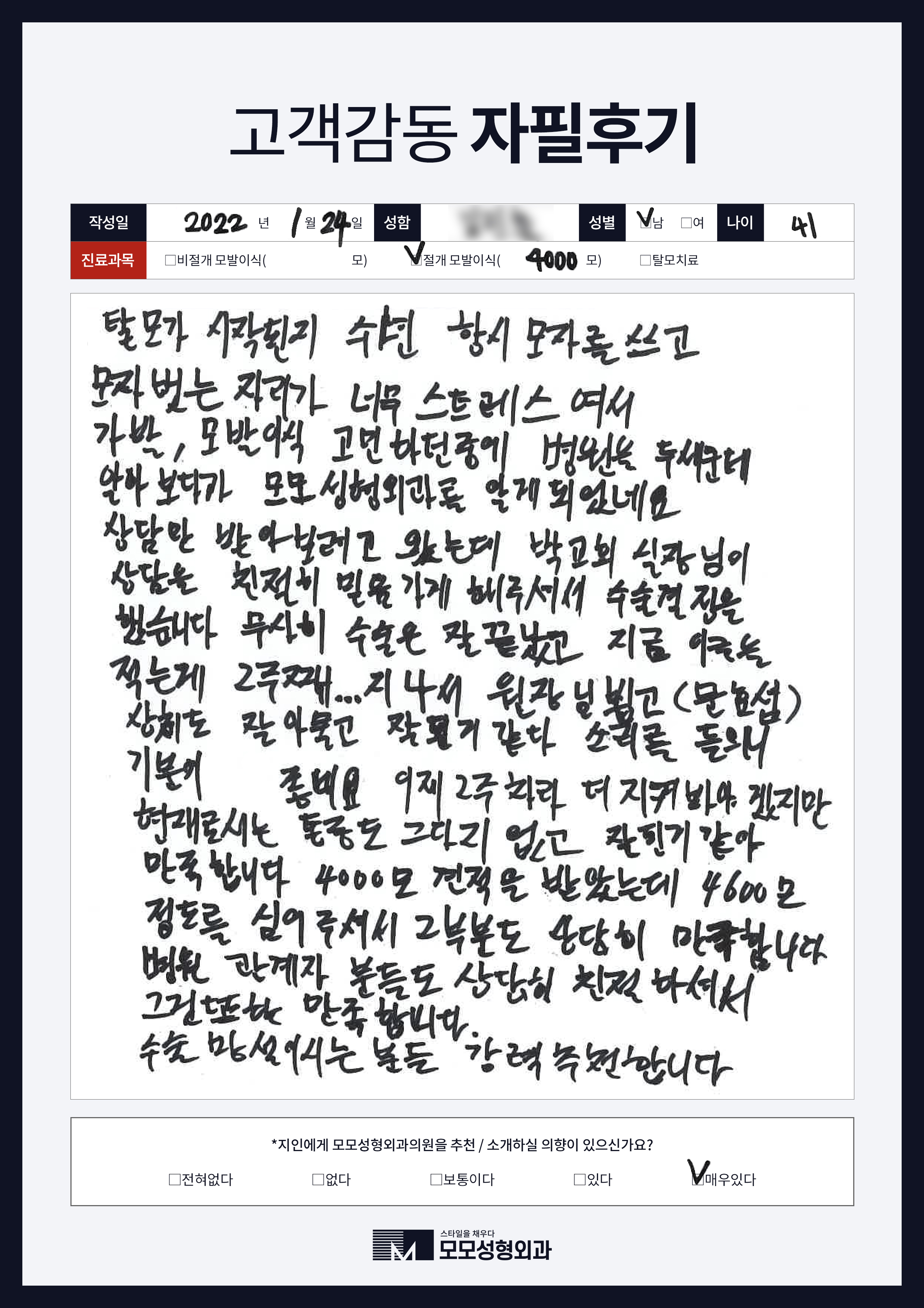 [40대]절개모발이식4000모이상, 높은M자이마