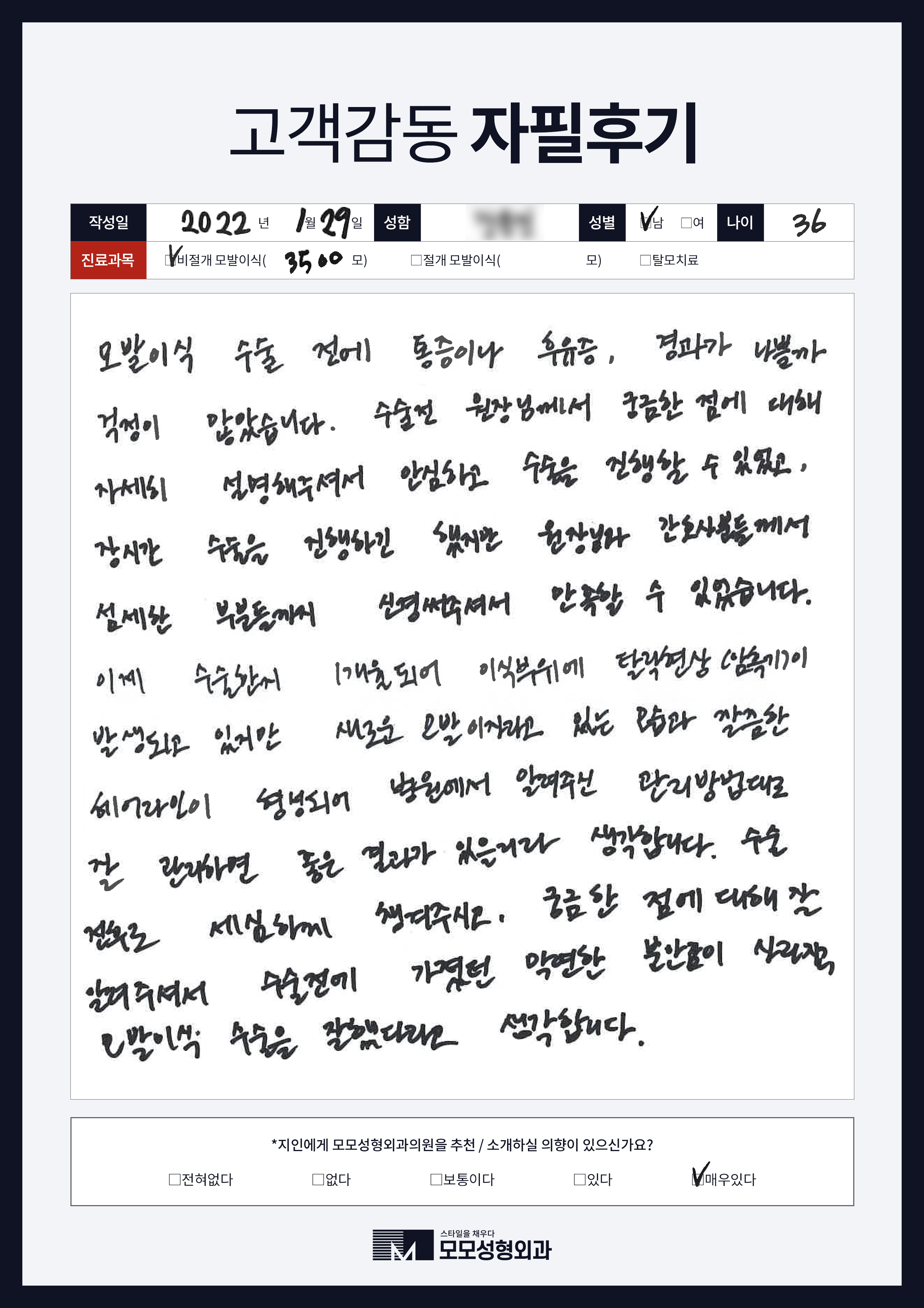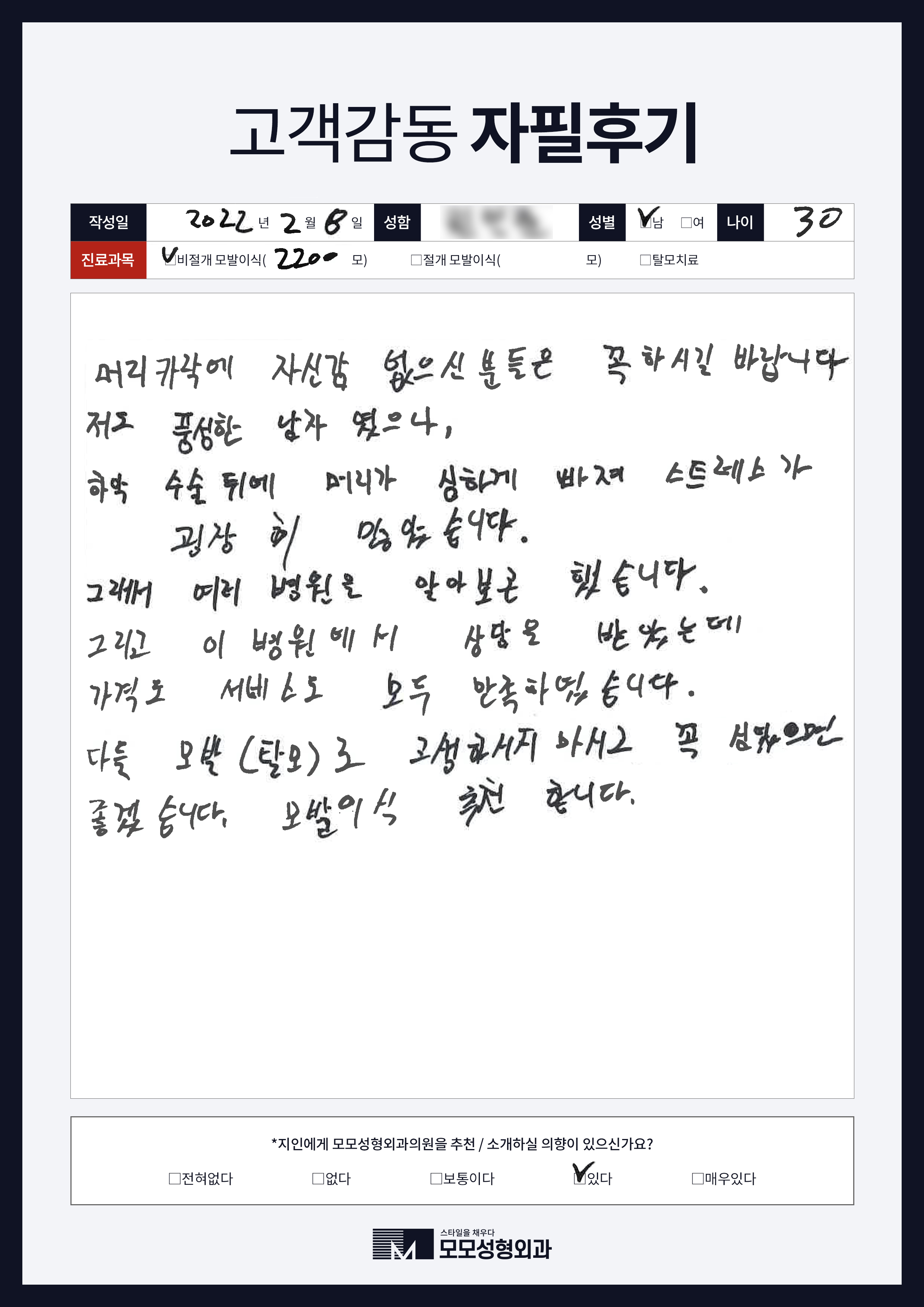 [30대]비절개모발이식3000모, M자이마