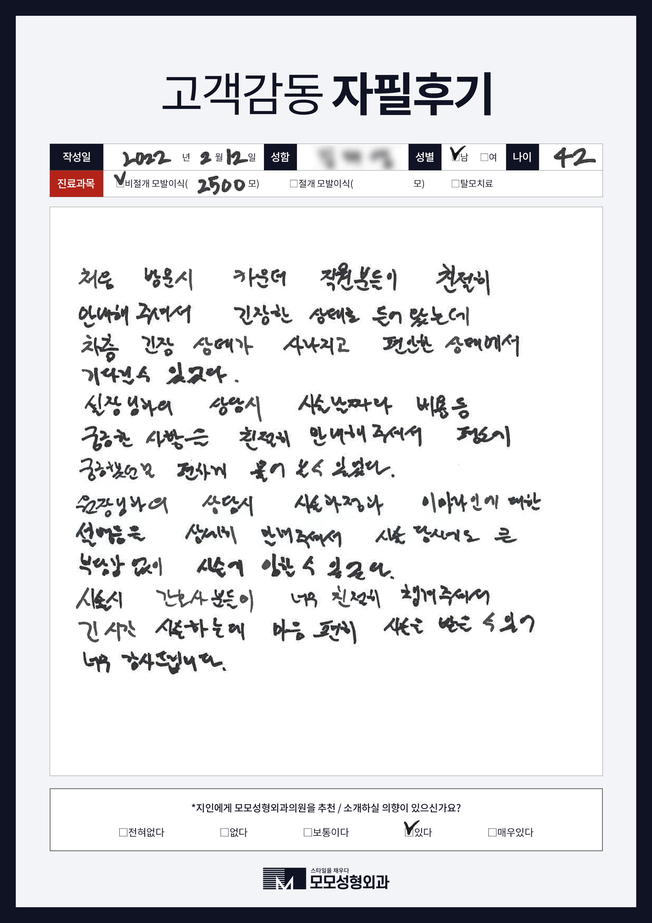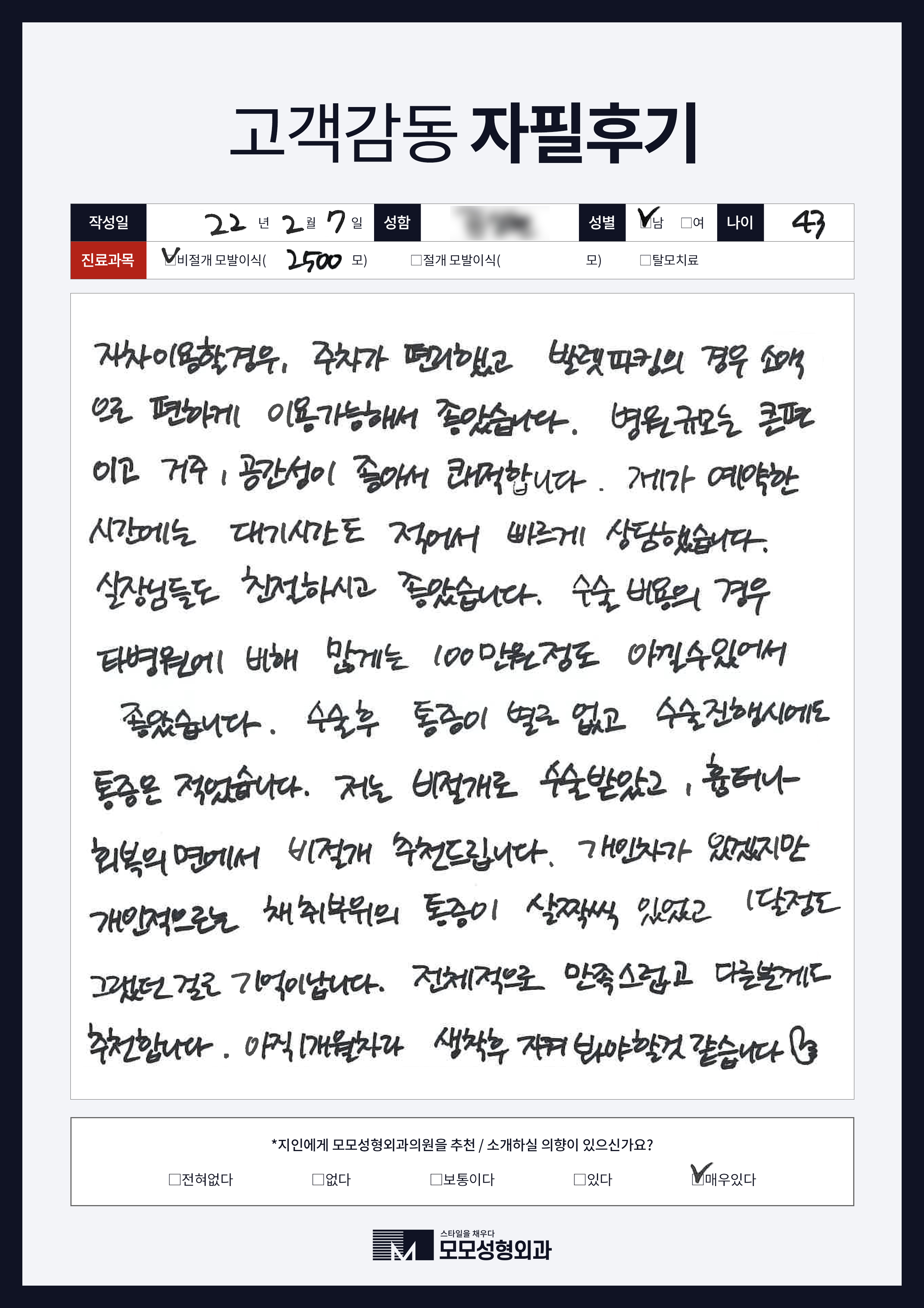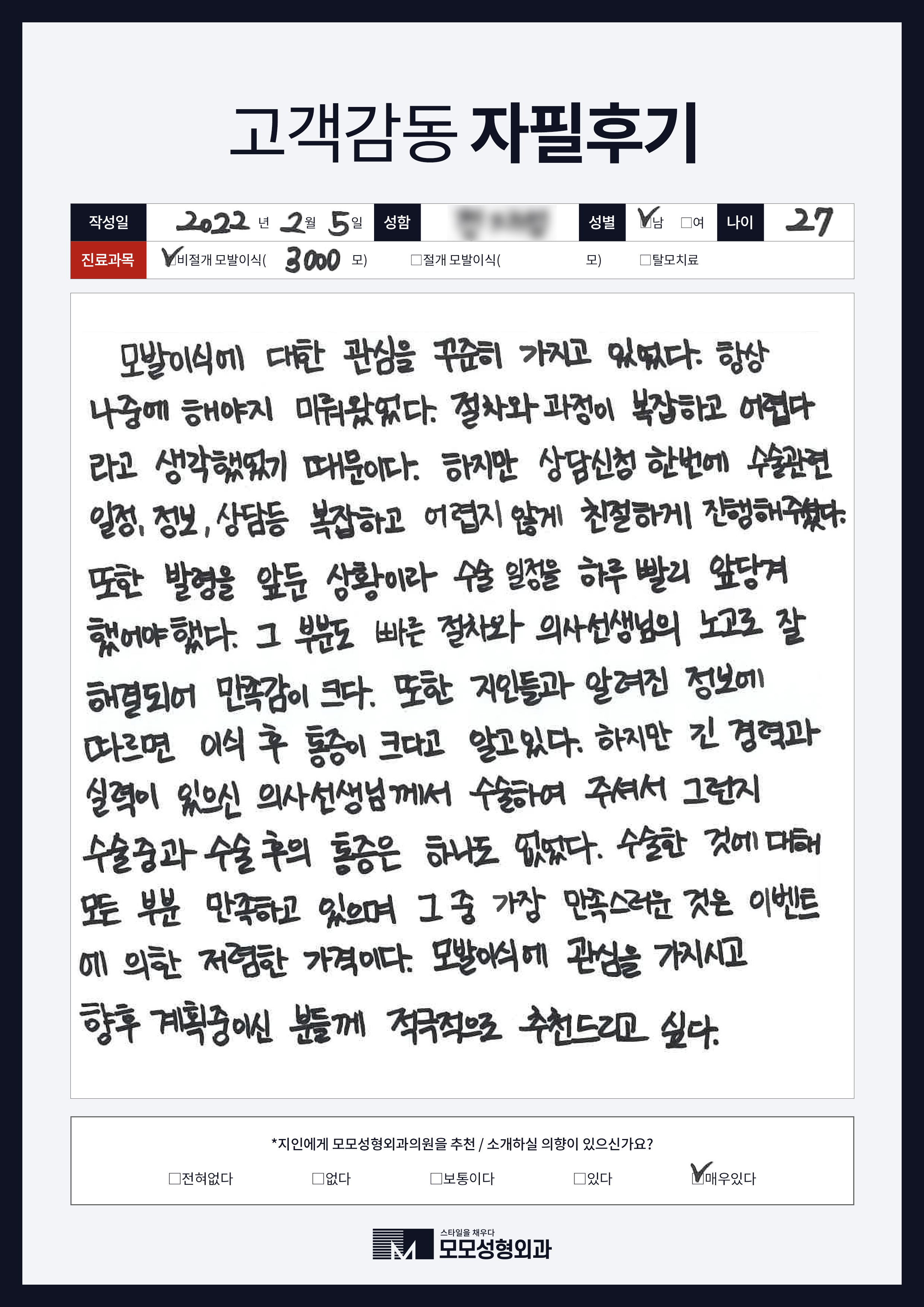 [20대]비절개모발이식3000모, M자이마