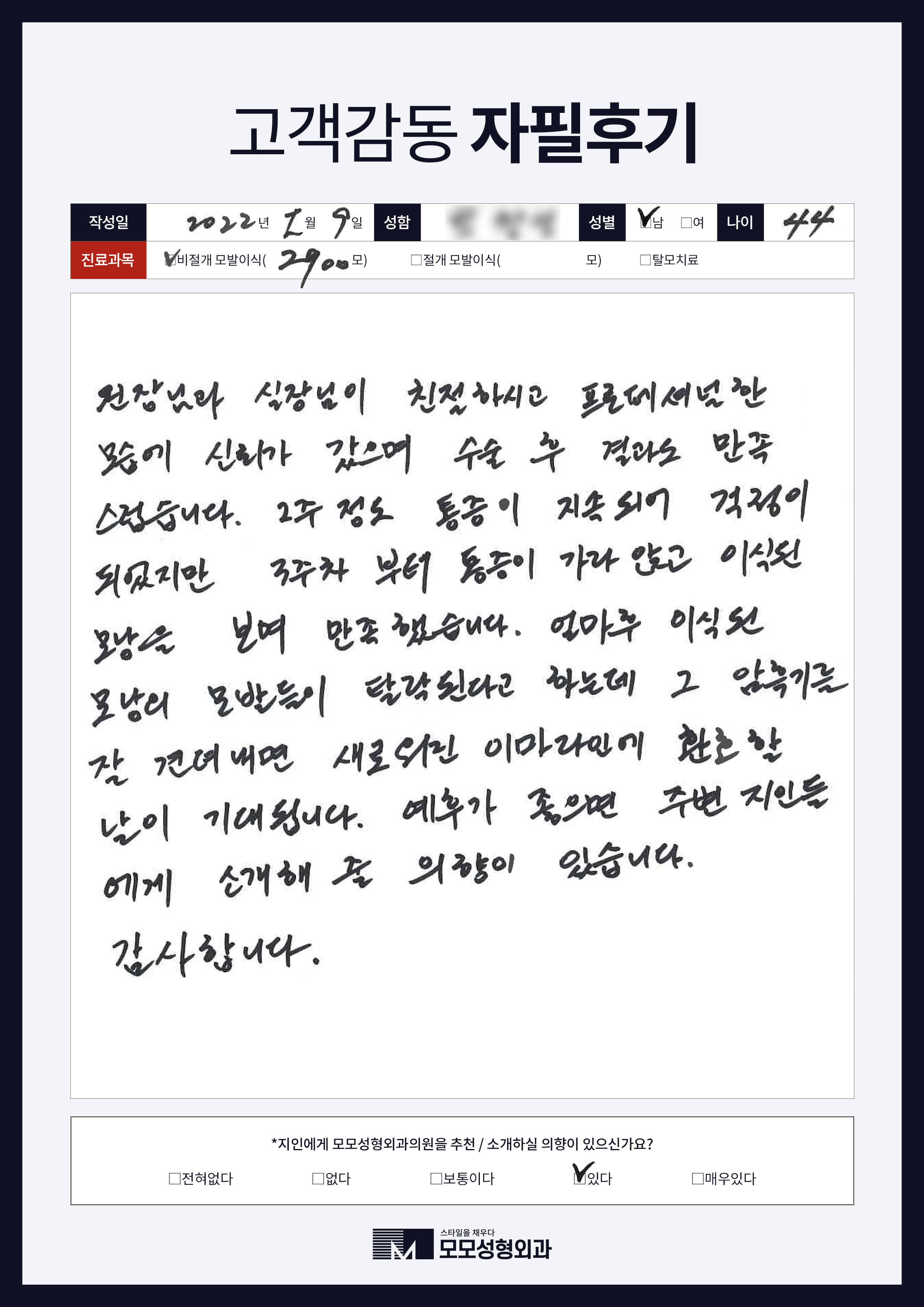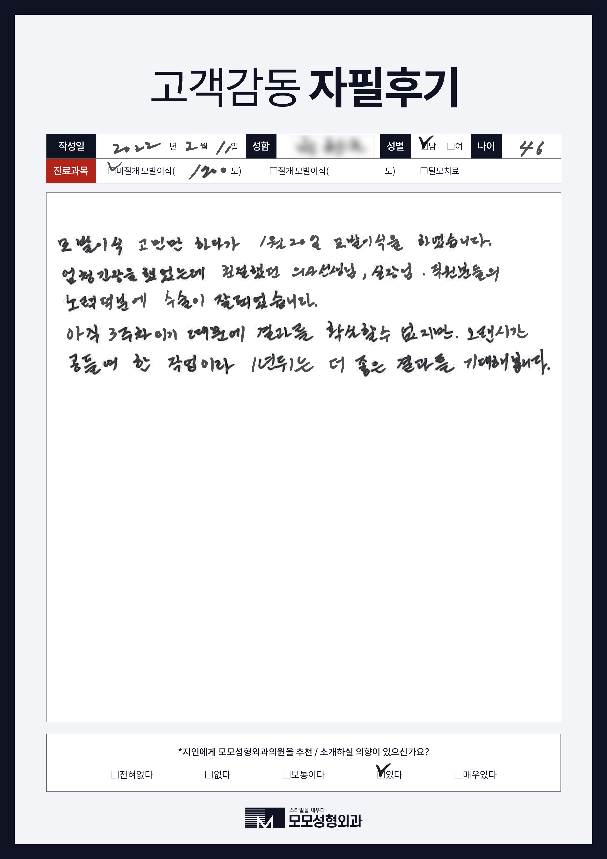 [40대]비절개모발이식2000모, M자이마