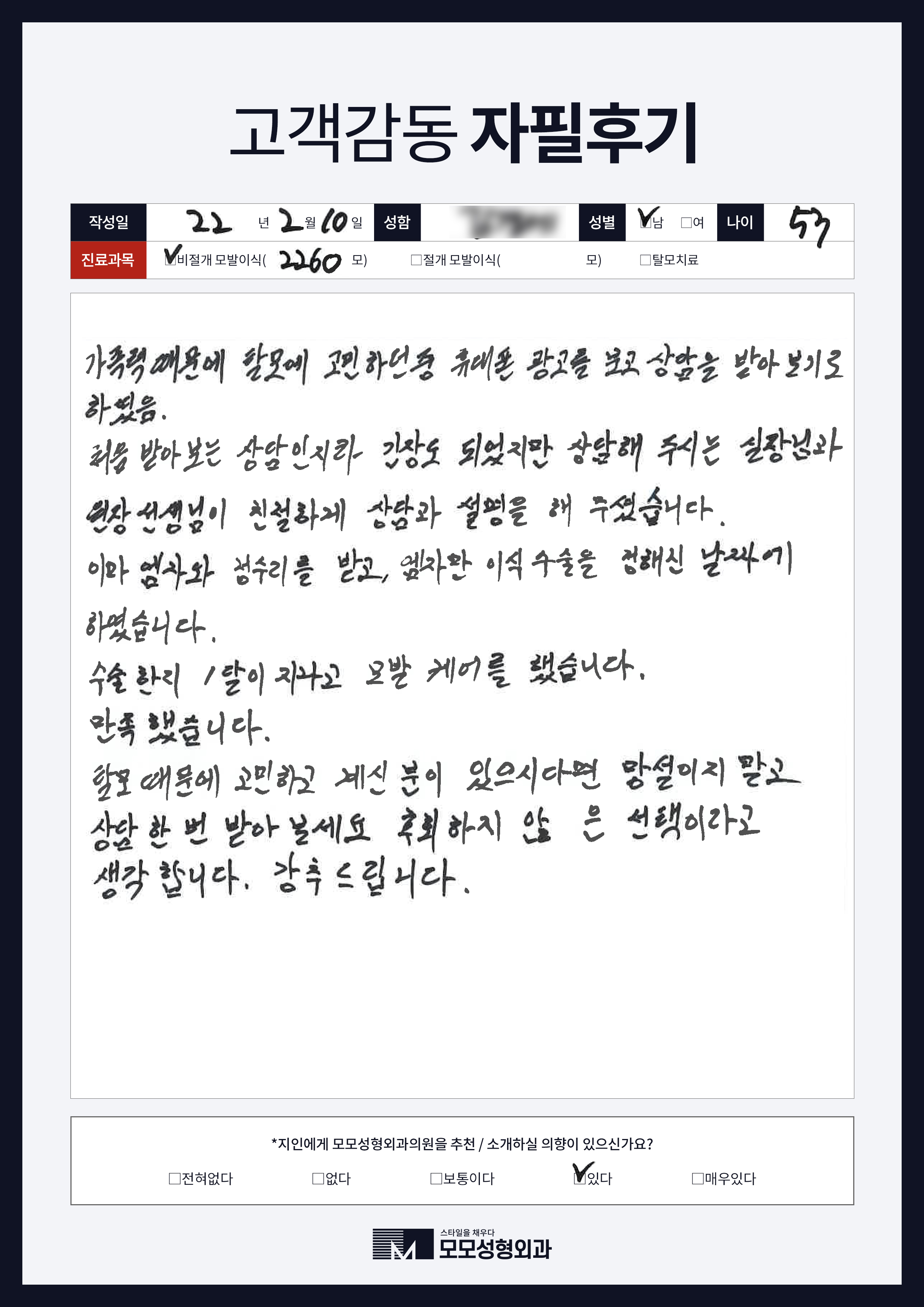 [30대]비절개모발이식2000모, M자이마