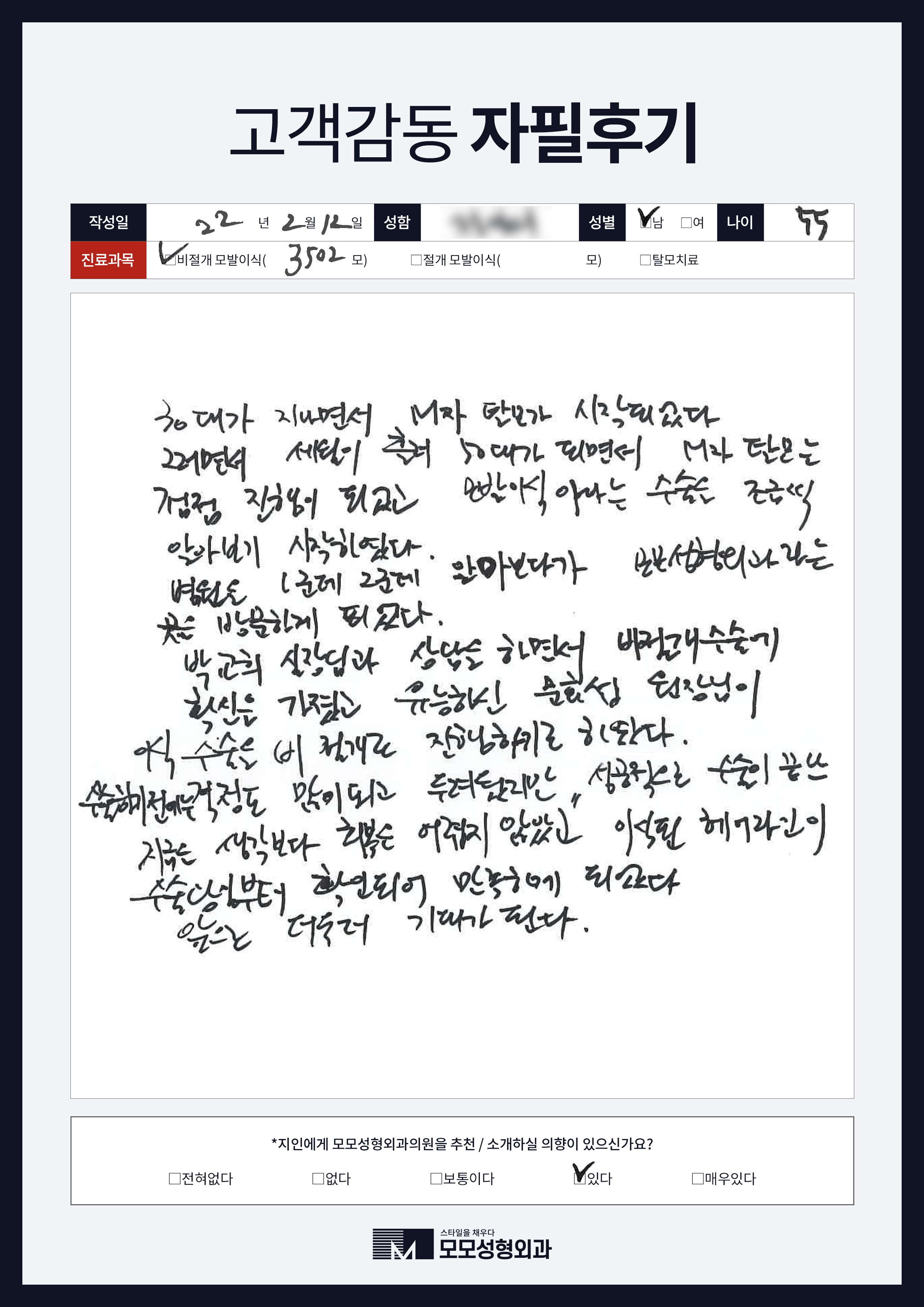 [50대이상]비절개모발이식3000모, M자이마