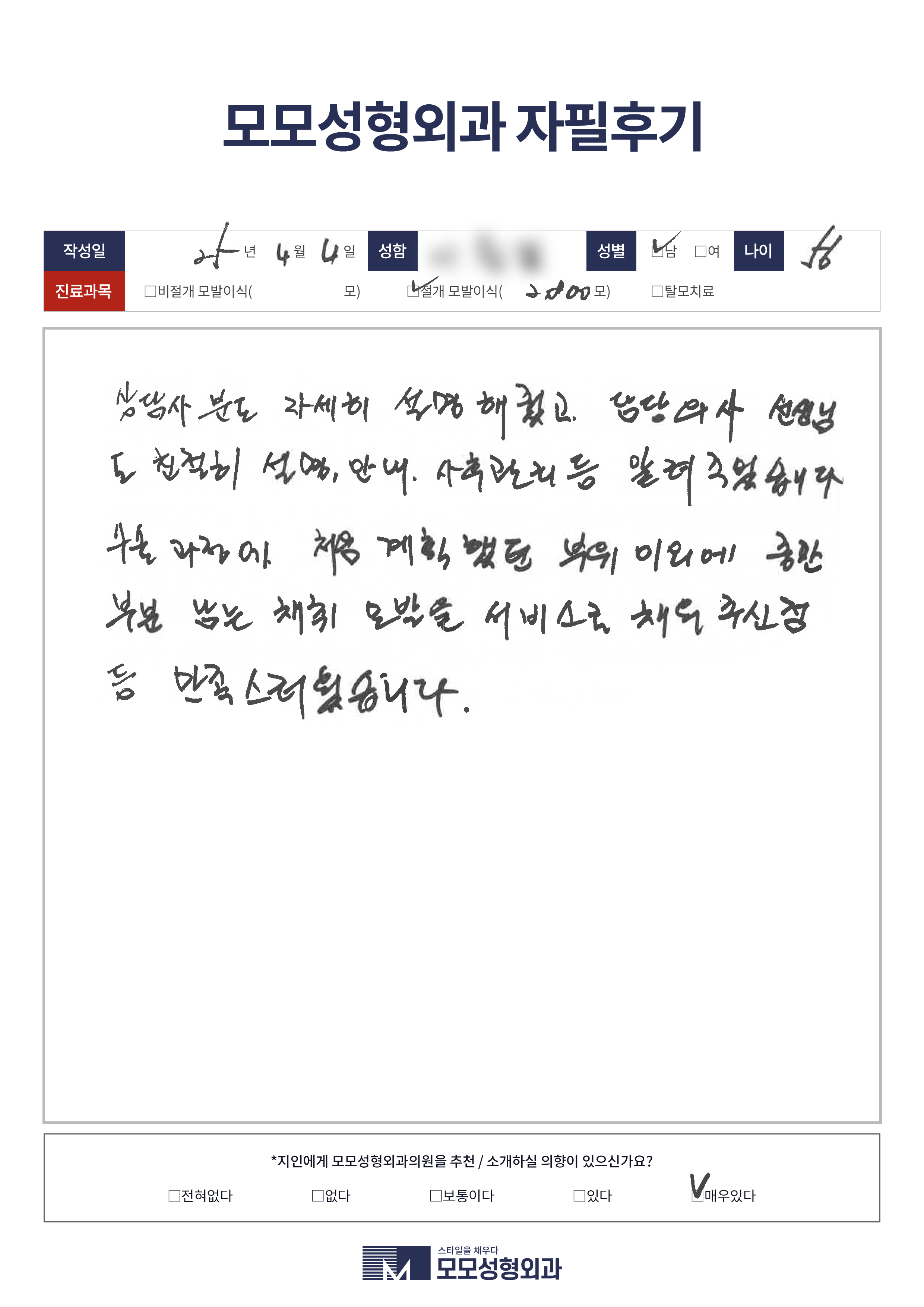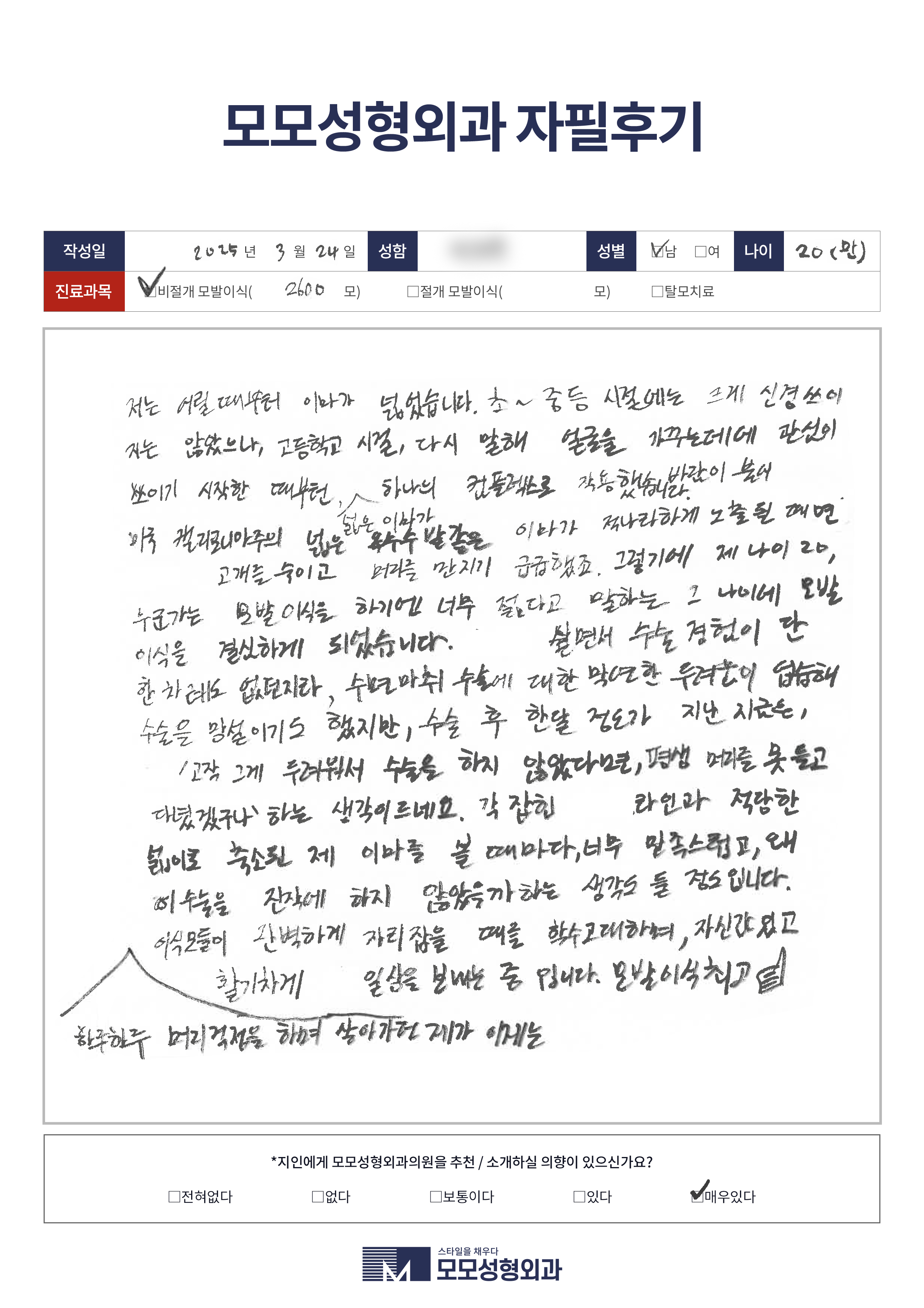 [20대]비절개모발이식2500모이상, M자이마