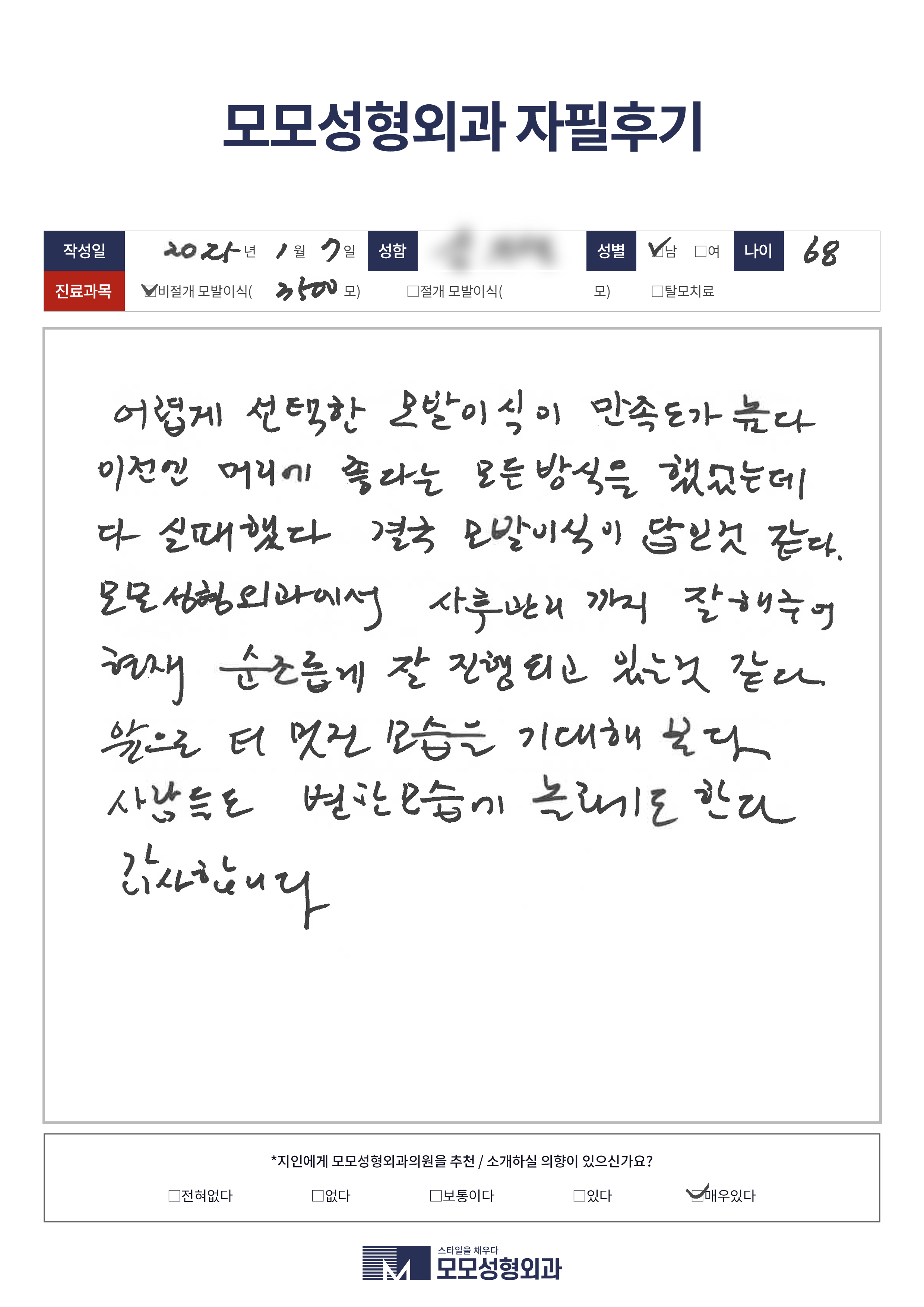 [50대이상]비절개모발이식3000모이상, M자이마