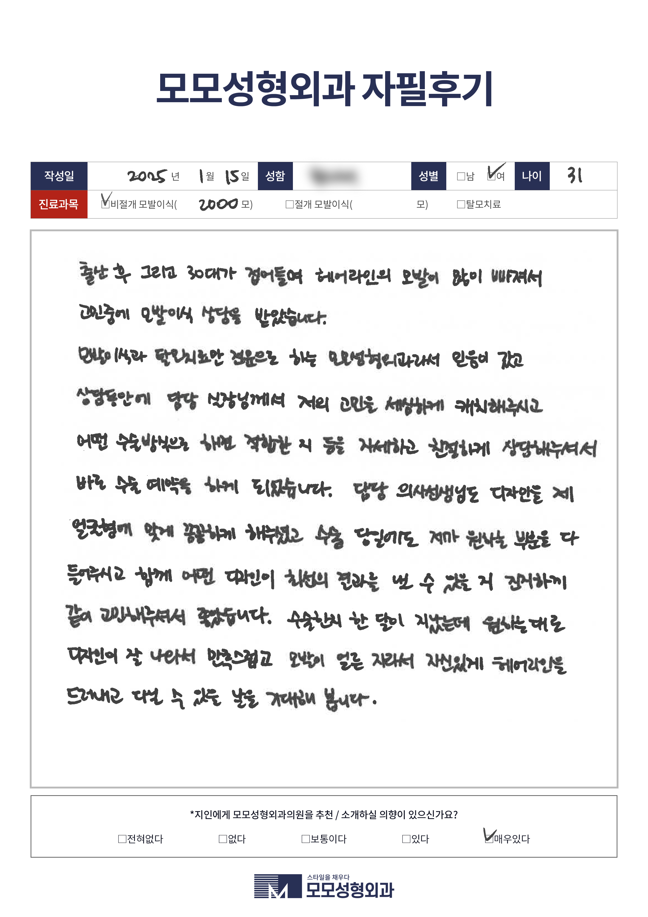 [30대]비절개모발이식2000모이상, 헤어라인