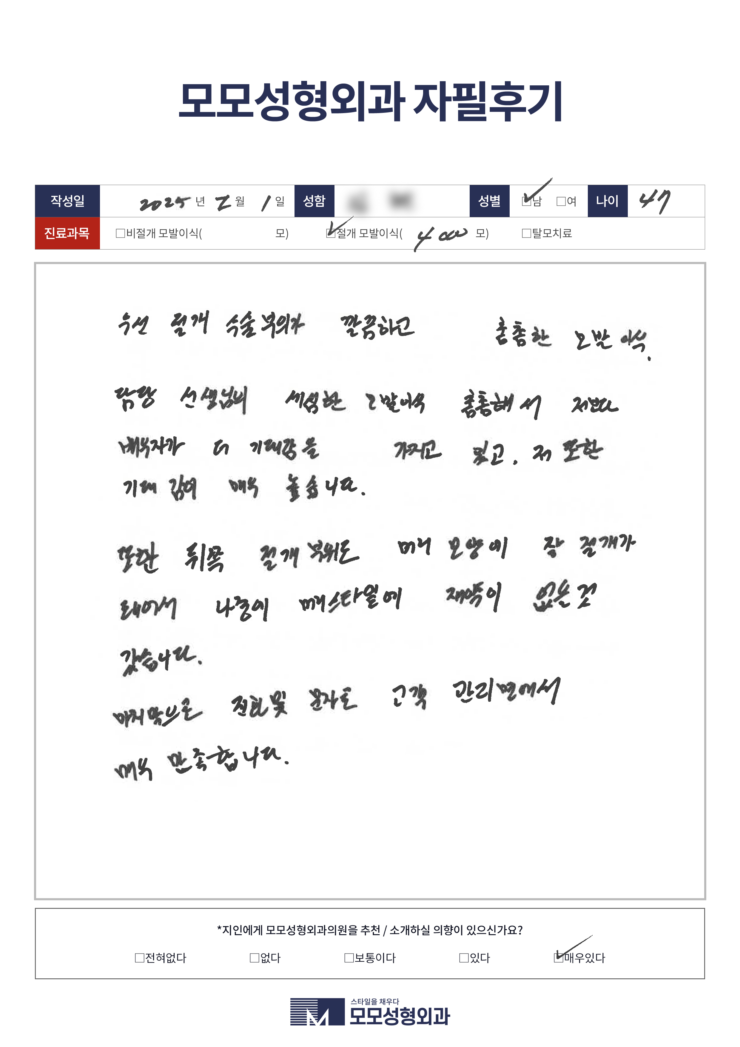 [40대]비절개모발이식2000모이상, M자이마