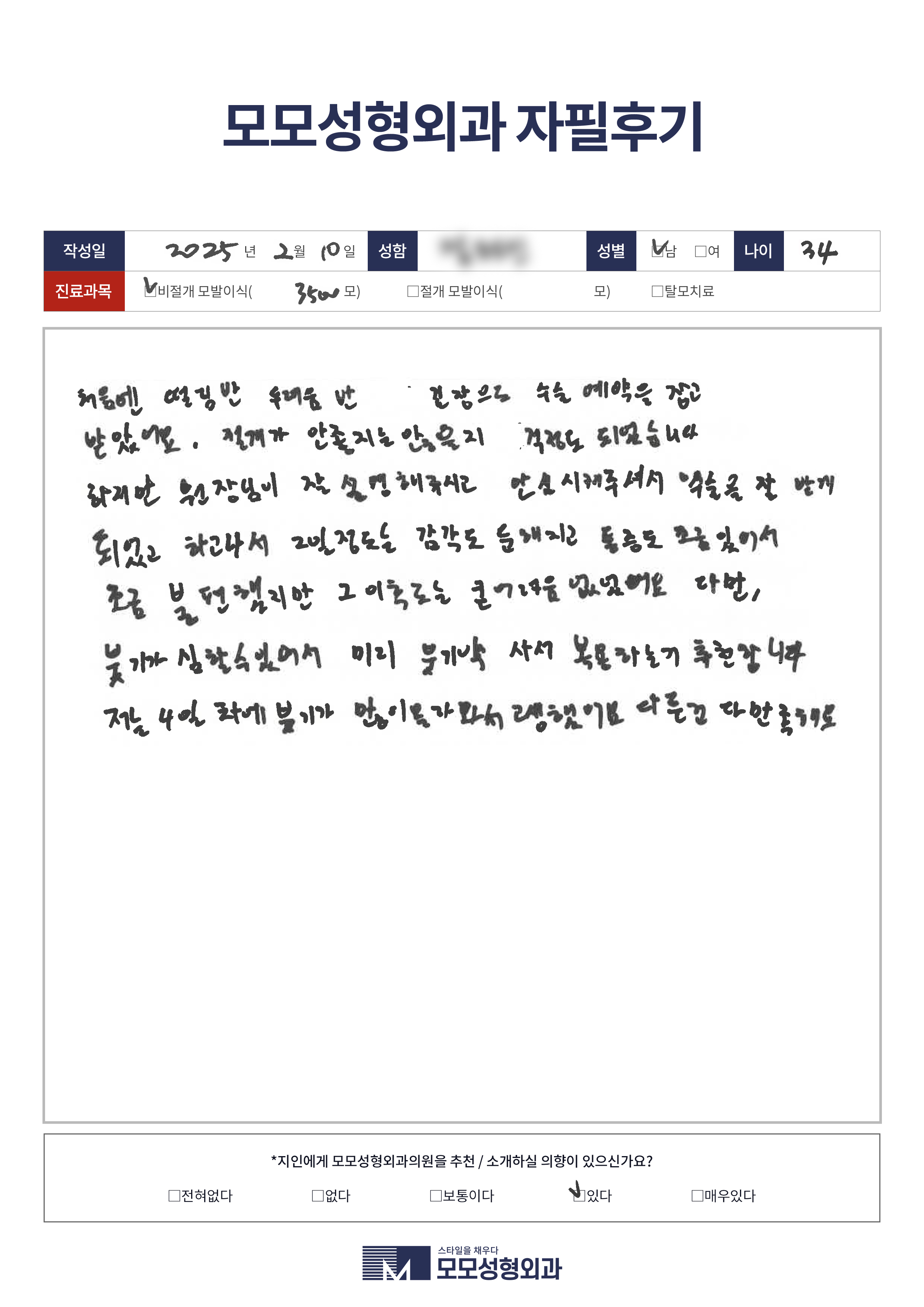 [30대]비절개모발이식3500모이상, M자이마