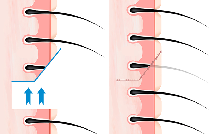 후두부 흉터 위로 모발이 자랄수 있도록 봉합하여 시간이 지나면서 머리카락이 흉터를 가려 자연스럽게 보이도록 하는 방법입니다.